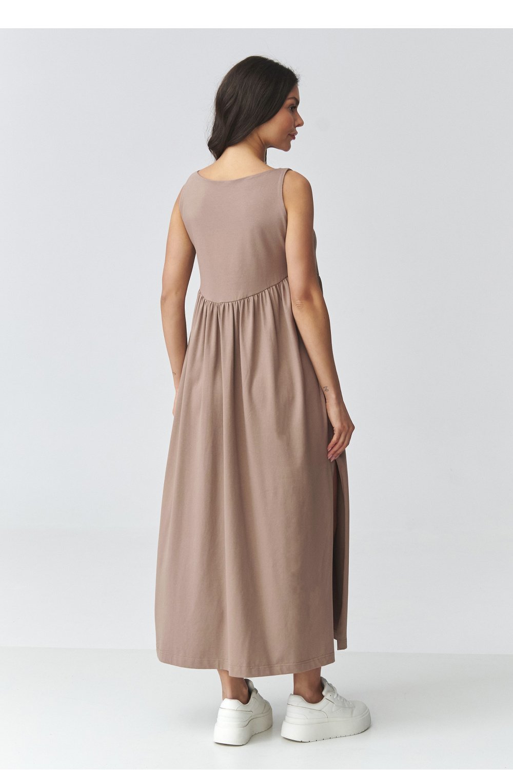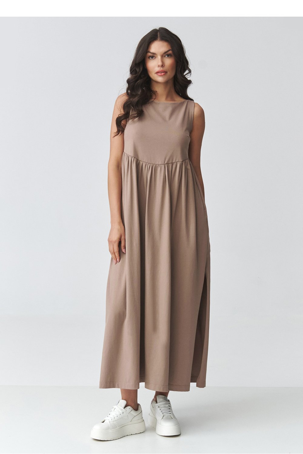 Moteriška maxi suknelė su šoninėmis skeltėmis ir kišenėmis Makadamia