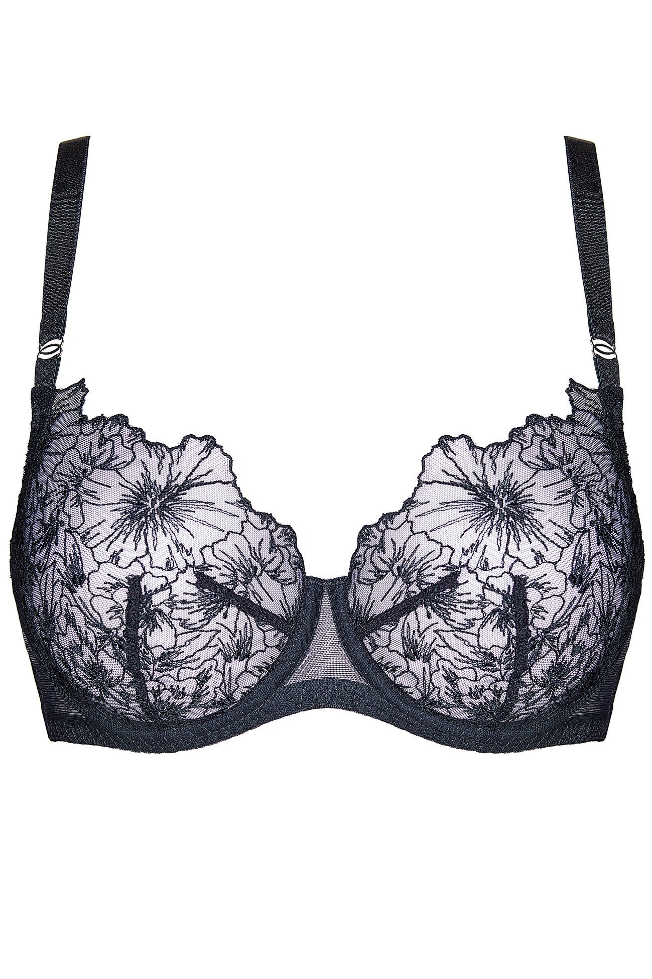 Šis minkštas liemenukas skirtas ieškančioms lengvumo, elegancijos ir subtilumo. Dalinai permatomos kaušeliai dekoruoti originaliu siuvinėjimu su šiek tiek satino blizgesiu. Stabilumą užtikrina šoninės vertikalios lankelės ir elastinga tiulio nugarėlė.