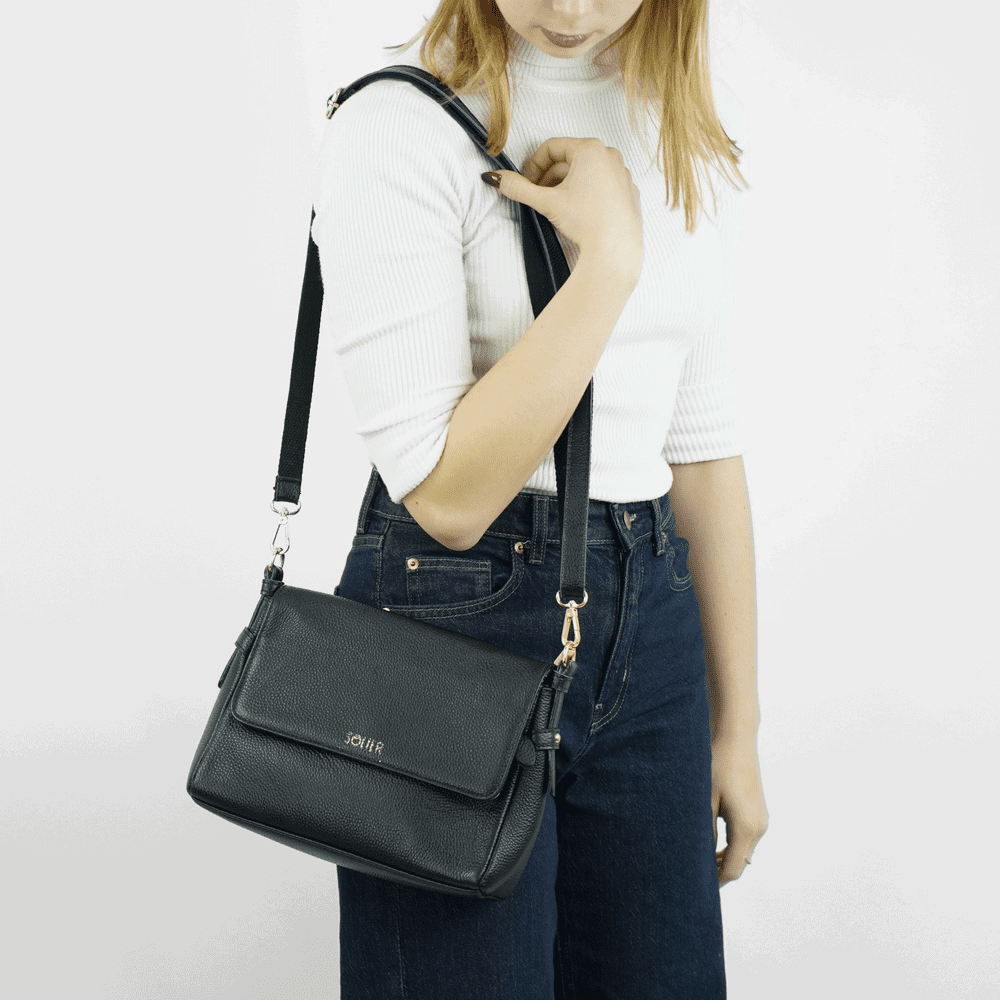 Rankinė tiks miesto pasivaikščiojimams ir vakariniams susitikimams, kai reikalingas kompaktiškas, bet tvarkingas daiktų išdėstymas. Dėl nuimamo dirželio galite nešioti ją ant peties dienos metu arba per kūną keliaujant, o juoda spalva lengvai derės tiek prie kasdienės, tiek prie šiek tiek elegantiškesnės aprangos.