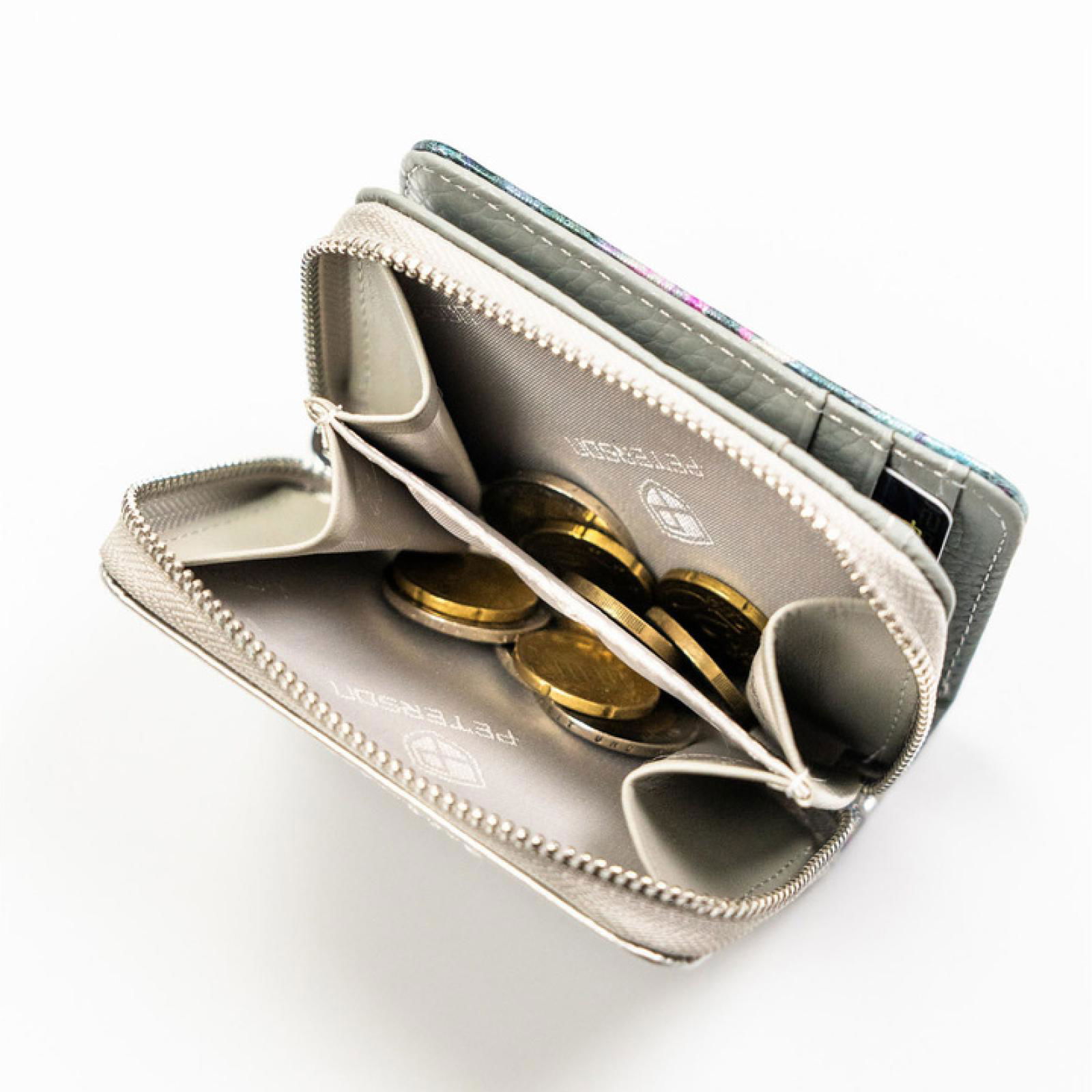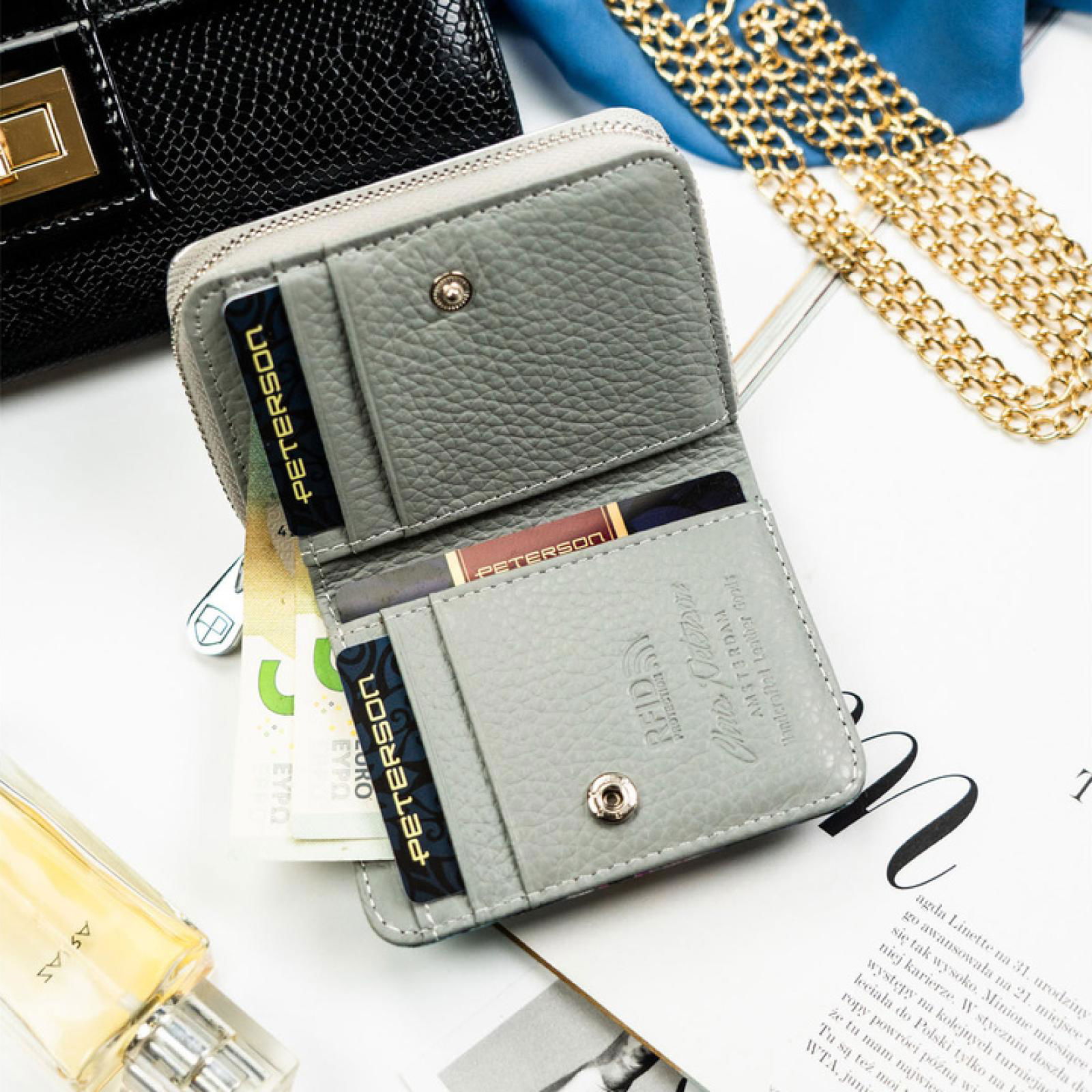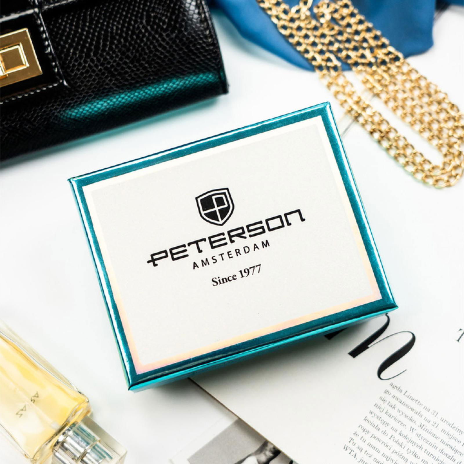 Moteriška piniginė iš natūralios ir ekologiškos odos Peterson. Medžiagos: natūrali oda ir ekologiška oda. Dizainas orientuotas į kasdienį nešiojimą, todėl piniginę galima laikyti tiek rankinėje, tiek kišenėje.