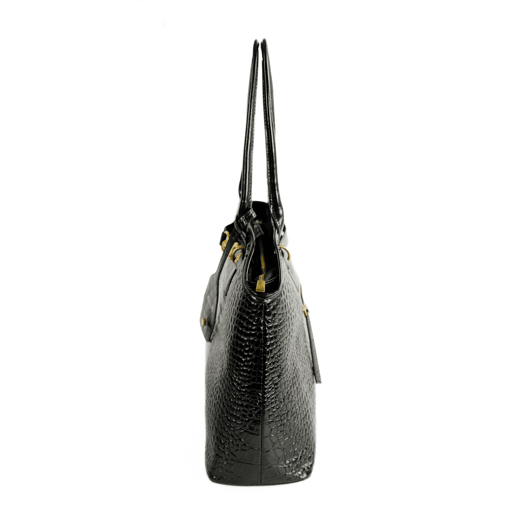 Moteriška rankinė iš lakuotos natūralios odos pasiūlo erdvę dokumentams ir kasdienėms reikmėms, o lakuotos odos paviršius suteikia subtilų blizgesį ir atsparumą drėgmei. Modelis turi pagrindinį užtrauktuką ir nugarinę kišenę su užtrauktuku, todėl svarbiausi daiktai lieka saugūs ir lengvai pasiekiami. Rankinės viduje – didelė kišenė su užtrauktuku ir dvi mažesnės kišenėlės tvarkingam daiktų išdėstymui.