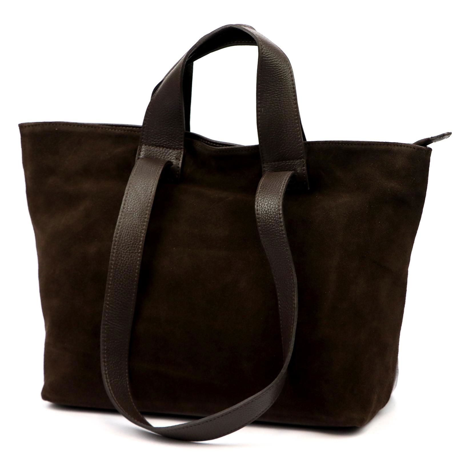 Moteriška rankinė iš zomšos – 43×30×17 cm ir dekoratyvios detalės iš natūralios odos suteikia tvarkingą išvaizdą bei pakankamai vietos kasdienėms reikmėms. Korpusas iš zomšos pabrėžia tekstūrą, o odos intarpai didina patvarumą. Luka kaip prekės ženklas užtikrina apdailos vientisumą ir aiškią dizaino liniją.