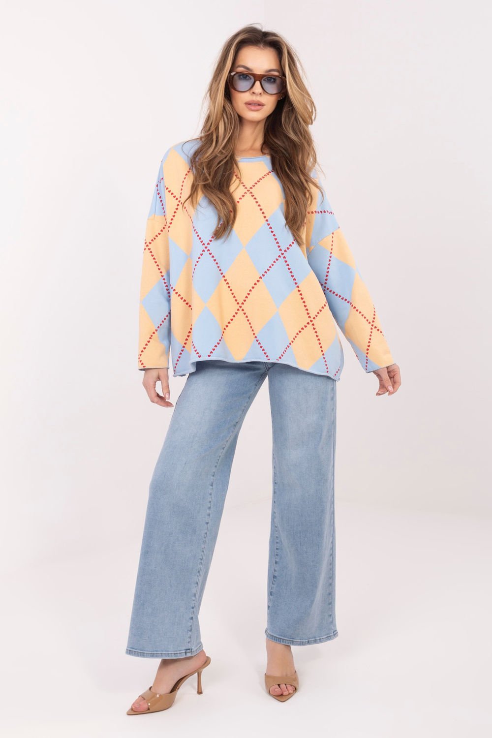 Moteriškas džemperis oversize iš medvilnės su geometriniu raštu