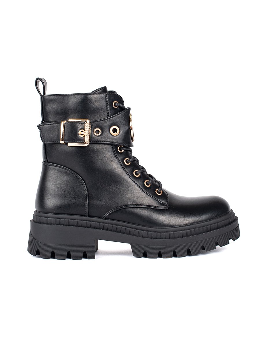 Moteriški juodi auliniai batai su dekoratyviniu dirželiu