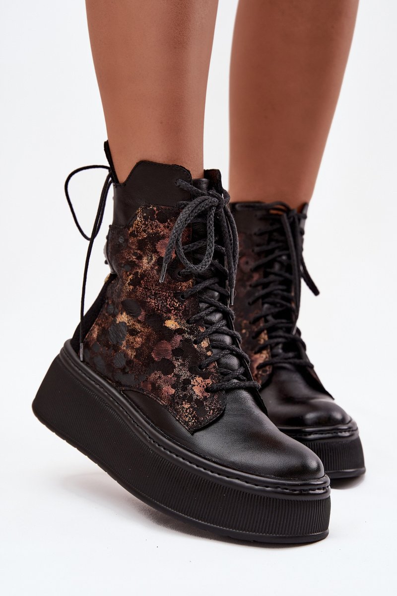 Moteriški juodi aulinukai su platforma iš odos ir zomšos
