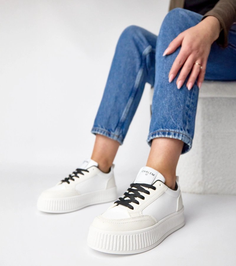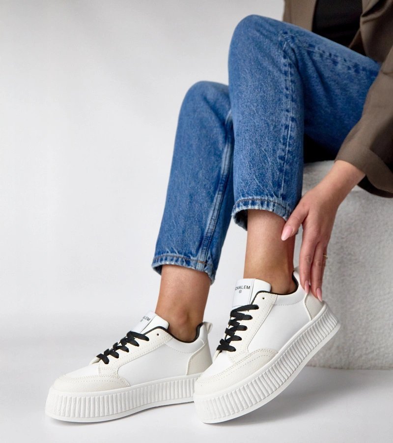 Moteriški kedai ant platformos balti juodi Solange