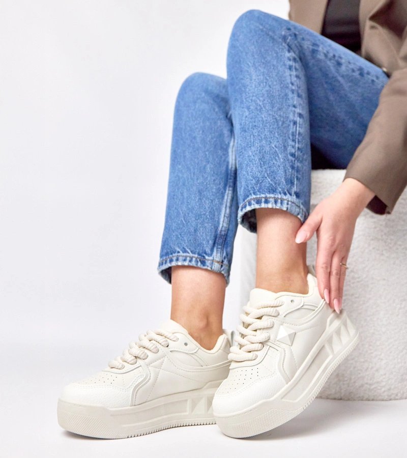 Šie sneaker tipo batai su platforma yra stilingas pasirinkimas ieškančioms patogumo ir modernaus dizaino. Smėlio spalva suteikia universalumo derinant prie įvairios aprangos, o platforma suteikia aukščio ir išskirtinumo. Tinka kasdieniam dėvėjimui tiek mieste, tiek laisvalaikiui.