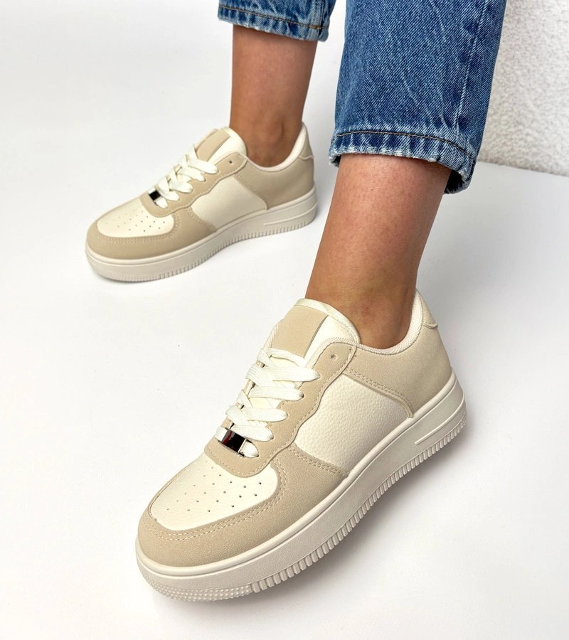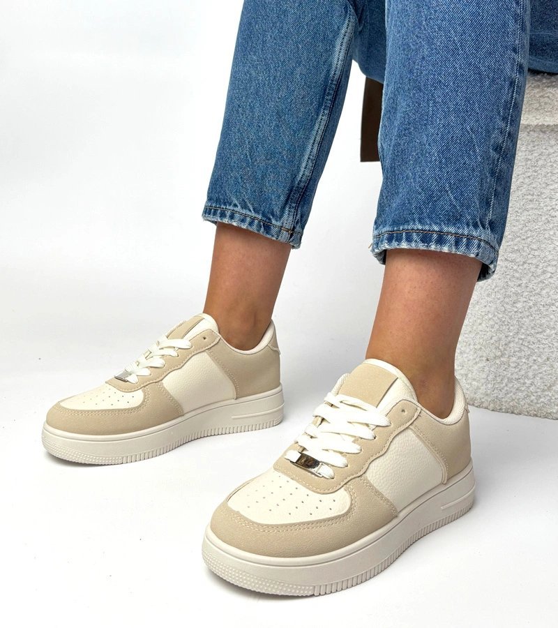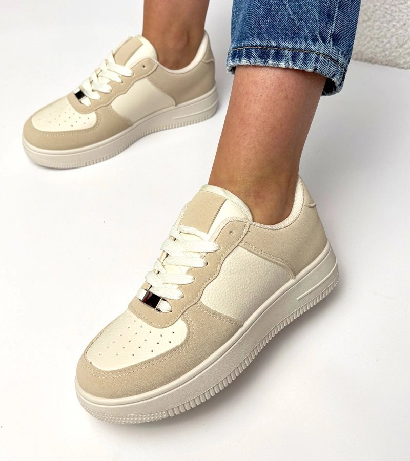 Šie smėlio spalvos moteriški sportinio stiliaus bateliai su platforma yra puikus pasirinkimas ieškančioms patogumo ir stiliaus derinio. Platforminis padas suteikia papildomo aukščio, o universali spalva lengvai derinama prie įvairių aprangos stilių.