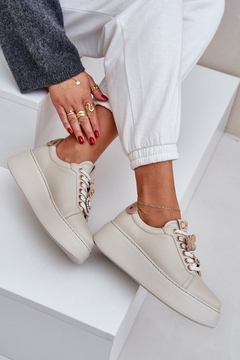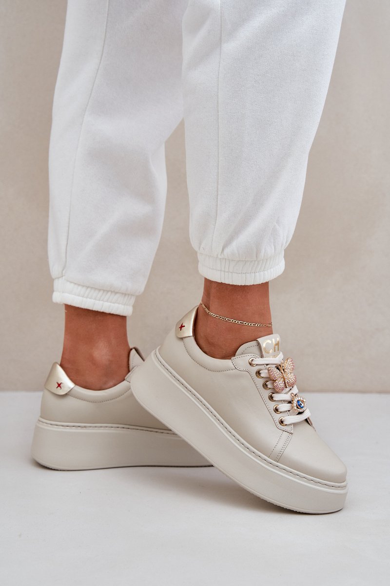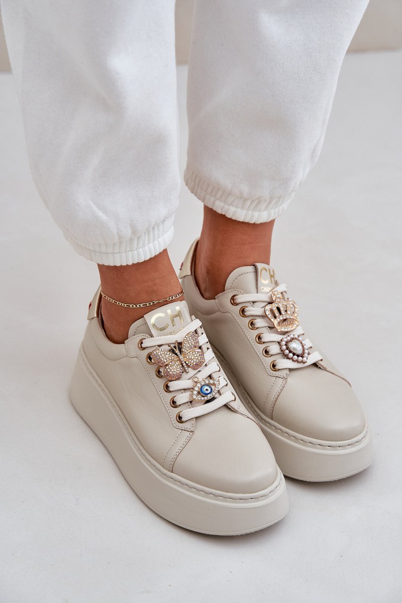 Moteriški odiniai platforminiai sportbačiai su dekoracijomis CheBello šviesiai smėliniai