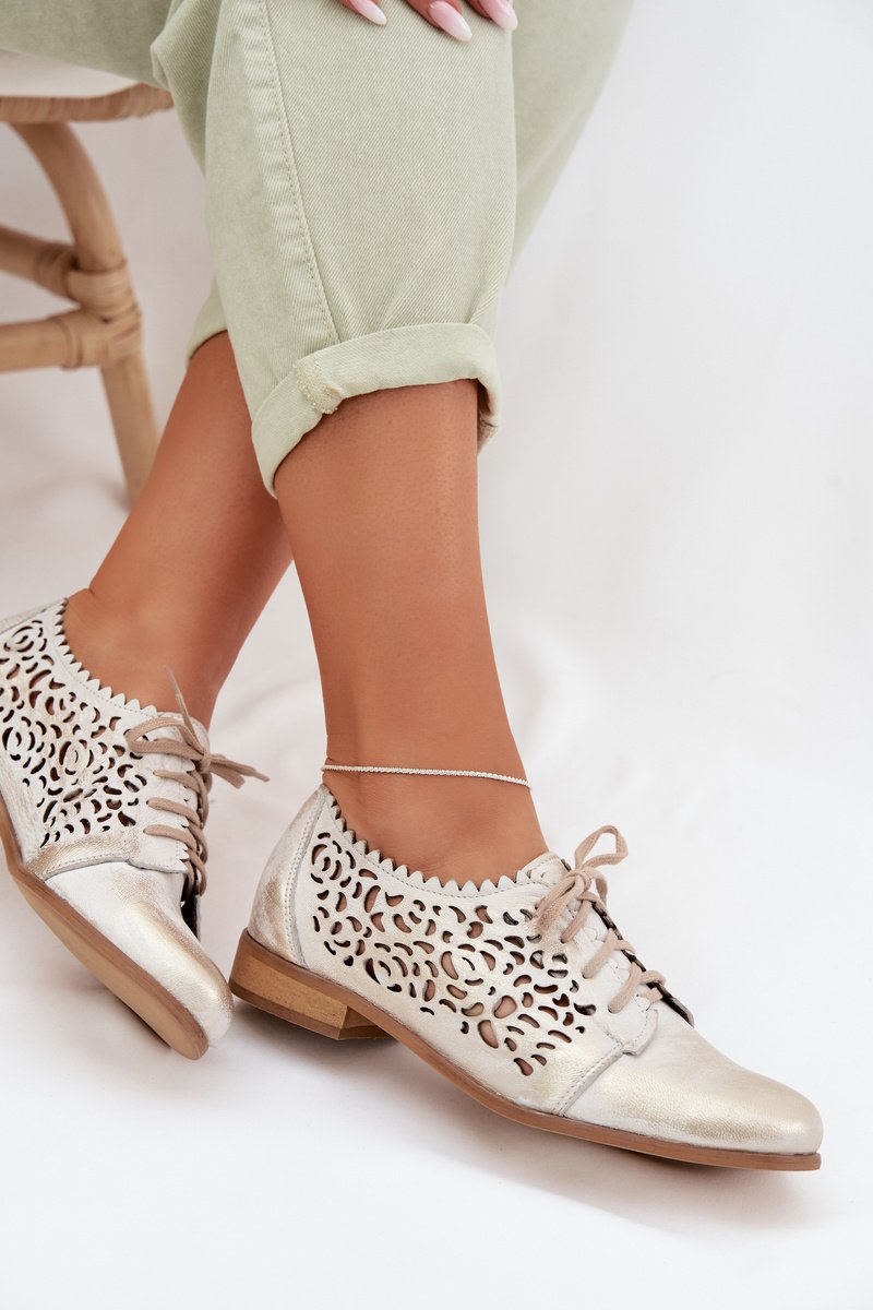 Moteriški pusbačiai iš natūralios odos auksiniai Zazoo