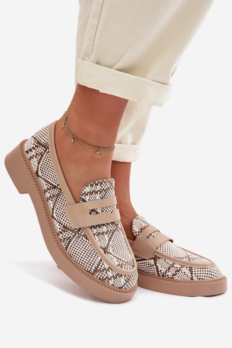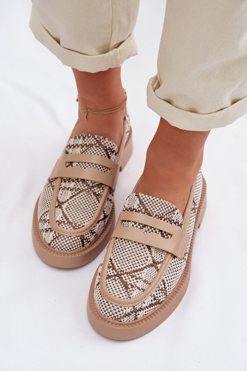 Moteriški mokasinai smėlio spalvos su raštu