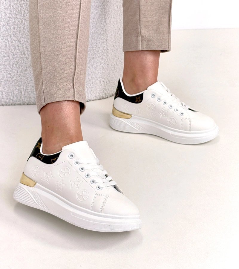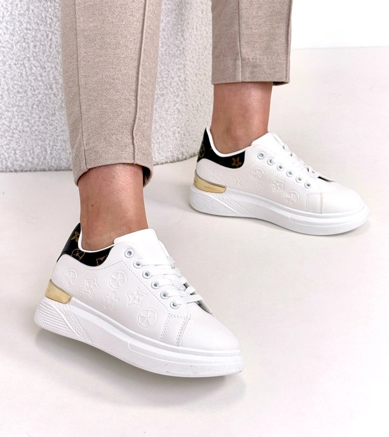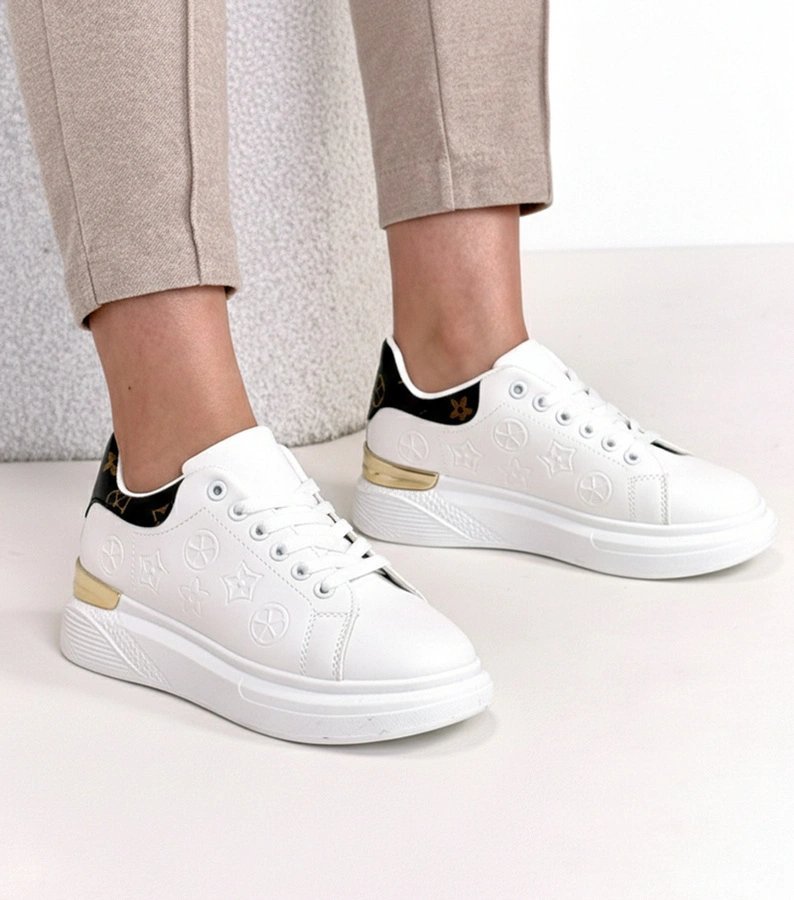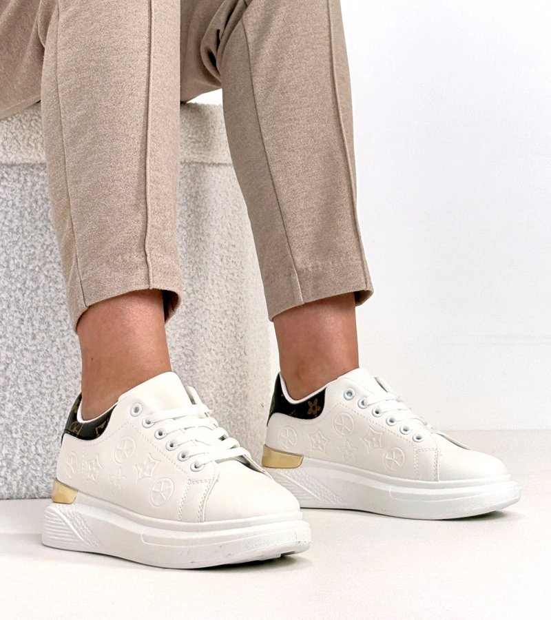 Sneakeriai balti – moteriški batai su reljefiniu raštu, pavadinti Peyton. Dekoratyvus įspaudas suteikia batams matomą tekstūrą ir vizualinį akcentą.