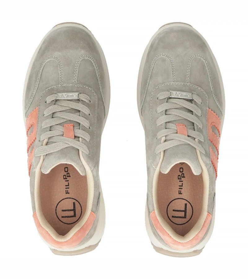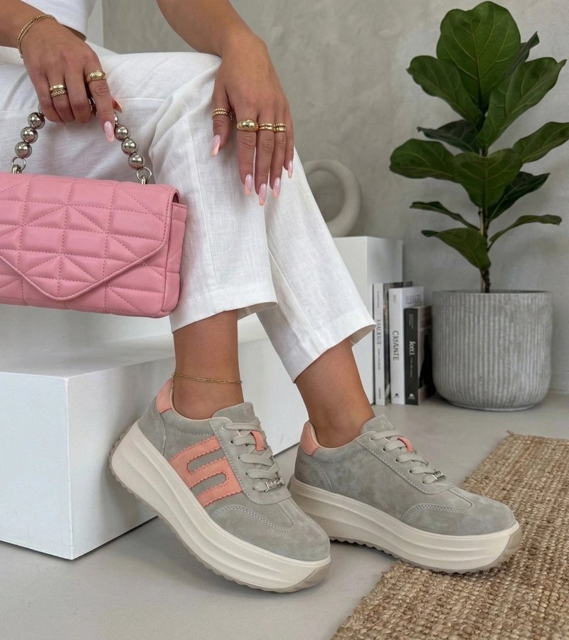 Moteriški sportbačiai iš natūralios odos – pilki su platforma, suteikia stabilumo ir šiuolaikišką siluetą, todėl patogu vaikščioti mieste ir išlaikyti tvarkingą kasdienį įvaizdį. Platforma prideda papildomo aukščio be didesnio nuovargio, o pilkas atspalvis lengvai derinamas su įvairia apranga. Filippo variantas akcentuoja miesto laisvalaikio stilių.