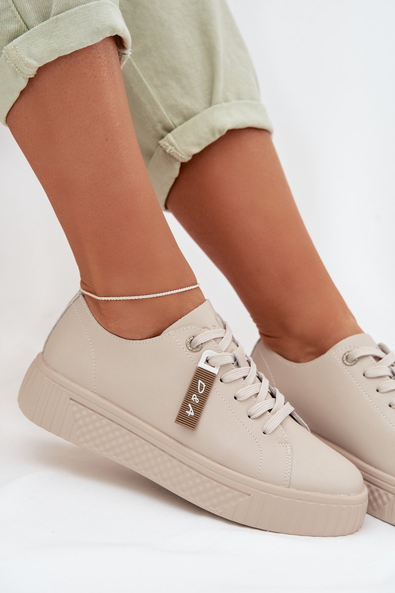 Moteriški sportbačiai iš natūralios odos smėlio spalvos D&A