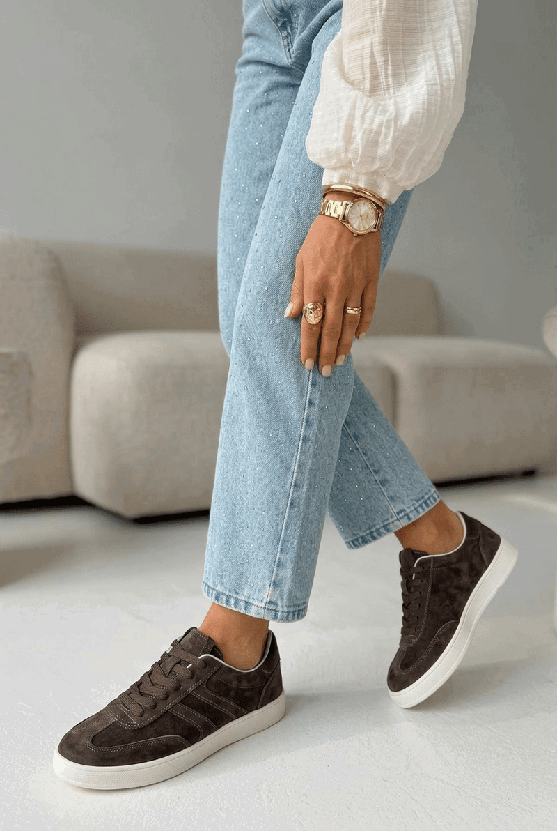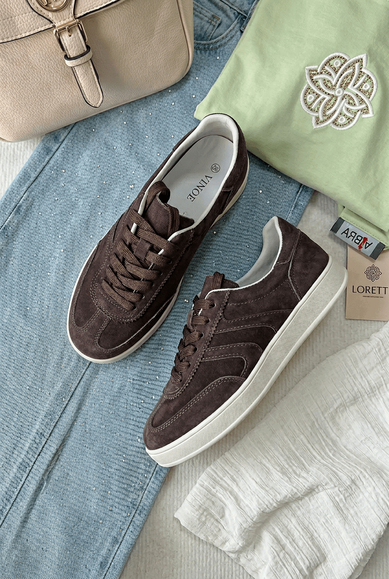 Moteriški sportbačiai iš zomšos šokolado spalvos Vinceza