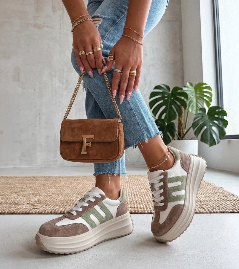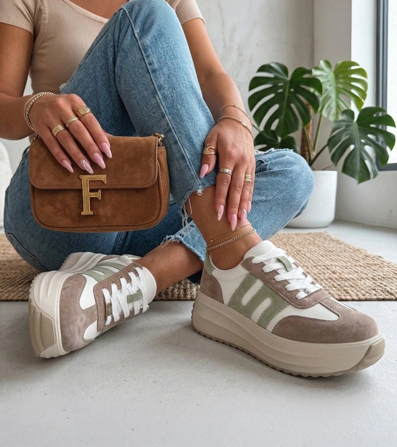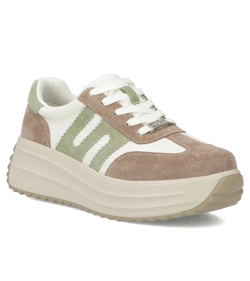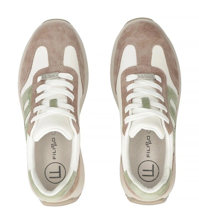 Moteriški sportbačiai smėlio spalvos – universalus atspalvis ir natūrali oda suteikia patvarumą bei lengvą priderinamumą prie kasdienio stiliaus; Filippo versija pasižymi pakeltu padu, kuris vizualiai pailgina kojas. Lengvai derinami prie džinsų ar laisvalaikio suknelių, jie tinka tiek miesto pasivaikščiojimams, tiek savaitgalio laisvalaikio veiklai. Platformos konstrukcija suteikia papildomo aukščio be aukštakulnių pojūčio, o natūrali oda gerėja dėvint.