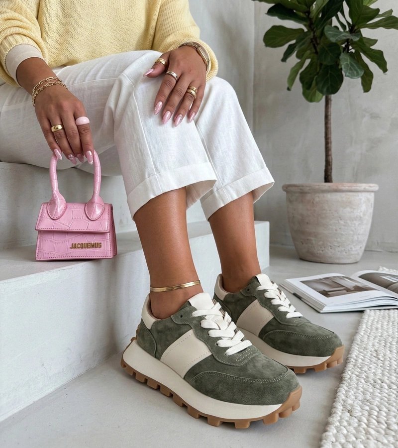 Moteriški sportbačiai žali, pagaminti iš natūralios odos – patogūs kasdieniam dėvėjimui ir suteikia papildomo aukščio dėka platformos. Filippo dizainas dera prie laisvalaikio ir miesto aprangos, o žalia spalva prideda akcentą prie neutralesnių derinių. Su lengvu padu ir išbaigtu siluetu jie tinka tiek pasivaikščiojimams, tiek trumpoms išvykoms.