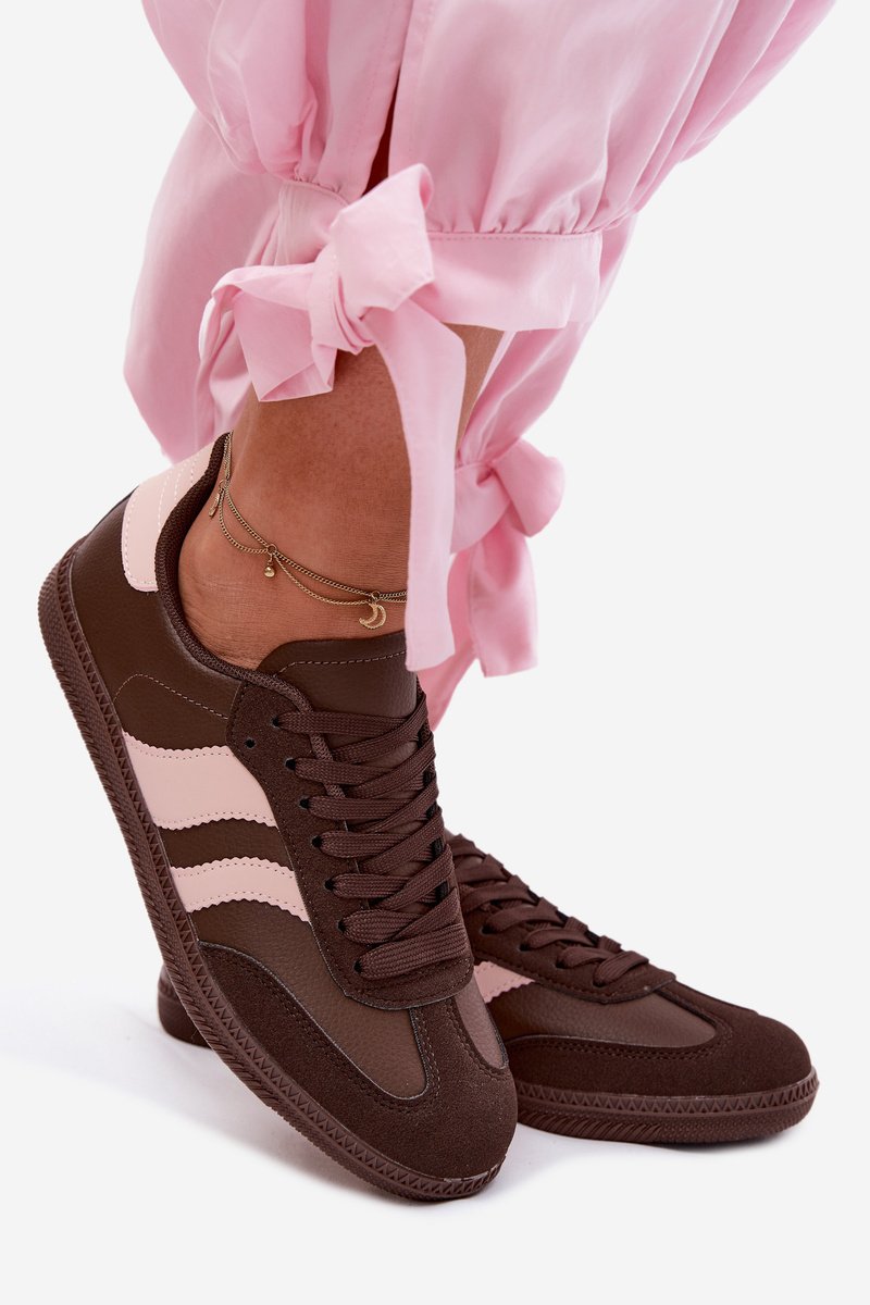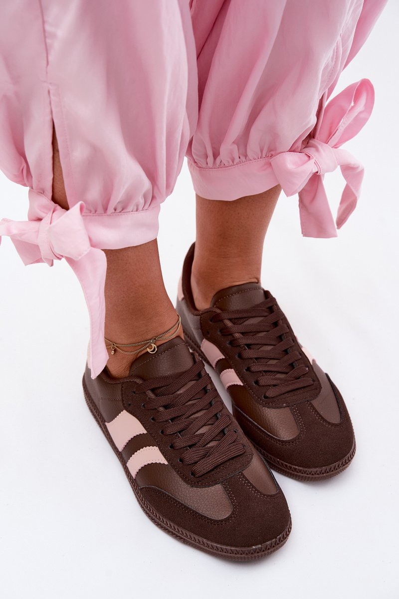 Žemapjūrio (low cut) moteriški sportiniai batai, pagaminti iš eko odos. Klassikinis užsirišimas ir dekoratyvios juostelės šonuose suteikia apibrėžtą siluetą ir vizualų akcentą. Tekstiniame apraše nurodyta, kad batai yra patogūs tiek pasivaikščiojimams, tiek aktyviam miesto dienos naudojimui.