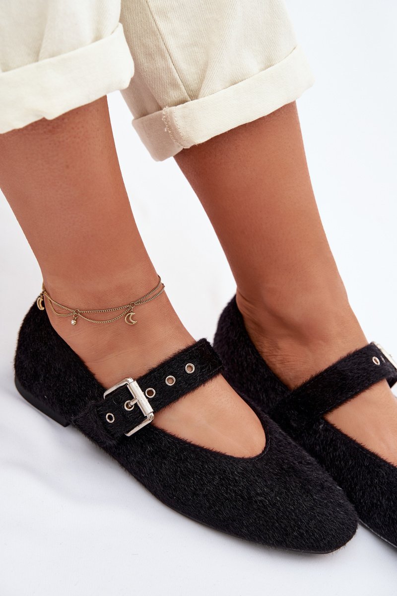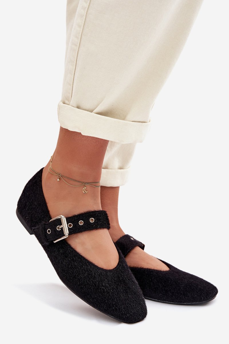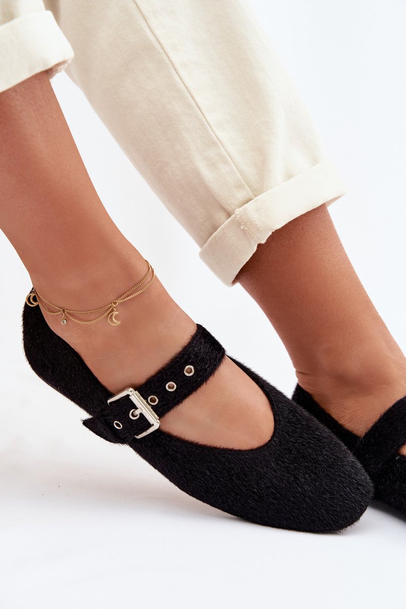 Moteriškos balerinos su dirželiu juodos Pamira