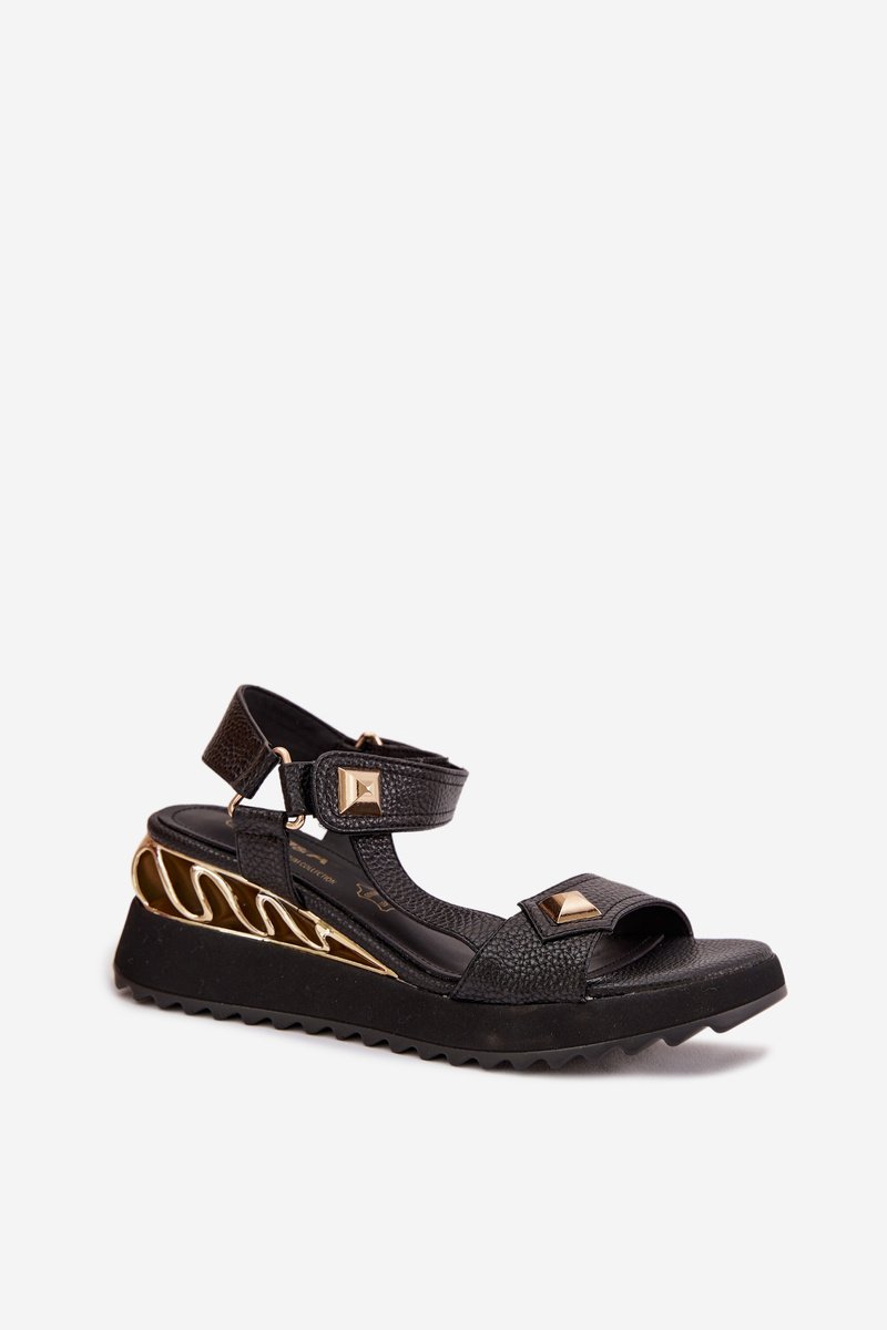 Moteriškos basutės su platforma puikiai tinka vasaros įvaizdžiui atnaujinti: jos turi platformą, auksinius akcentus ir reguliuojamą užsegimą, todėl derės tiek prie kasdienių, tiek prie išleistinių derinių. Pagamintos iš natūralios odos, juodos spalvos basutės suteikia stabilumo ir universalaus derinimo galimybę. Minkšta vidpadė pagerina komfortą ilgo nešiojimo metu, o lipnus užsegimas leidžia greitai pritaikyti tvirtumą prie kojos.