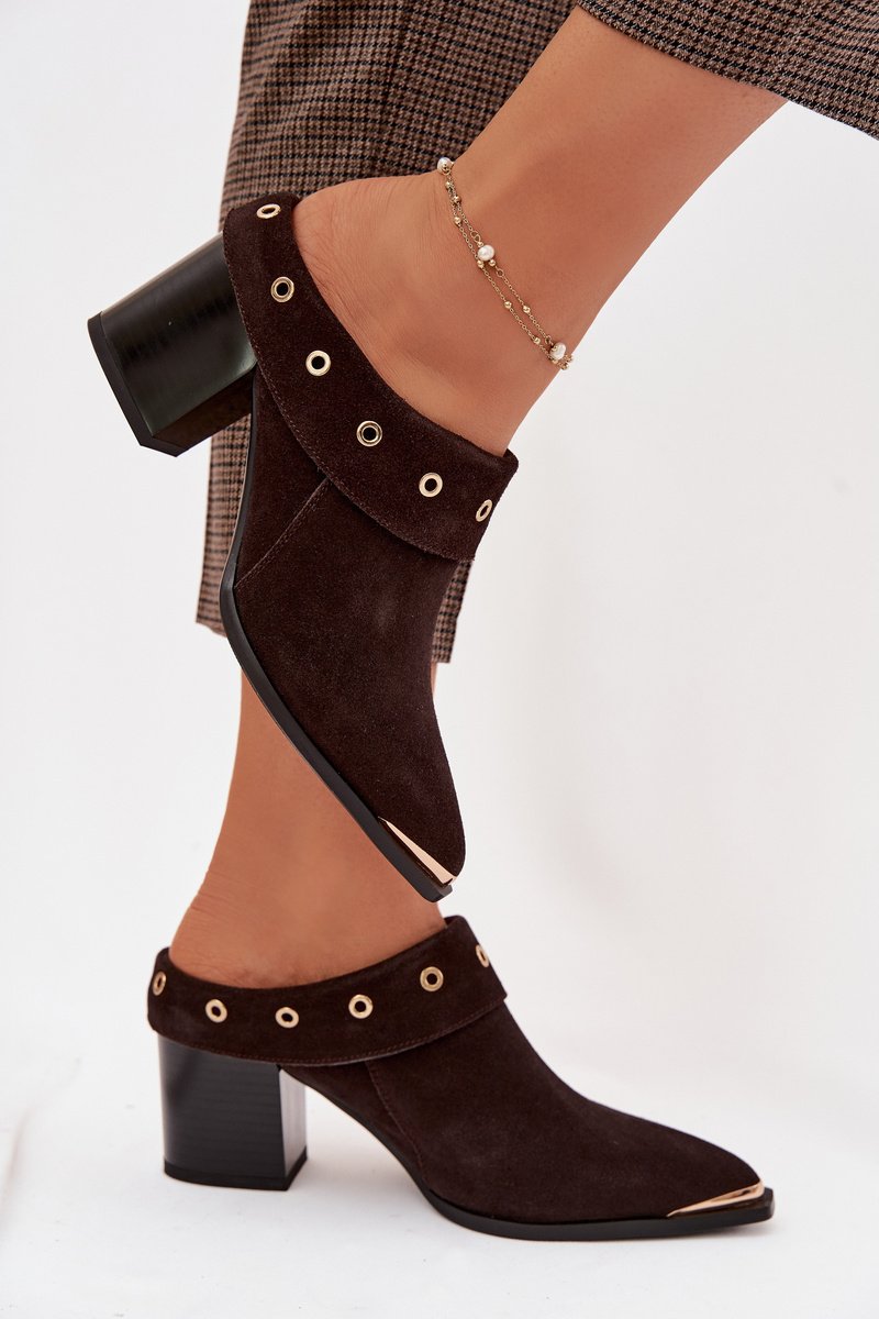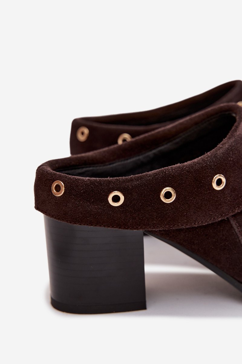 Moteriškos šlepetės iš zomšos su stulpelio kulnu ruda D&A