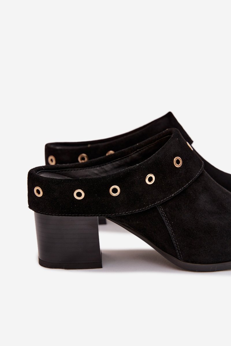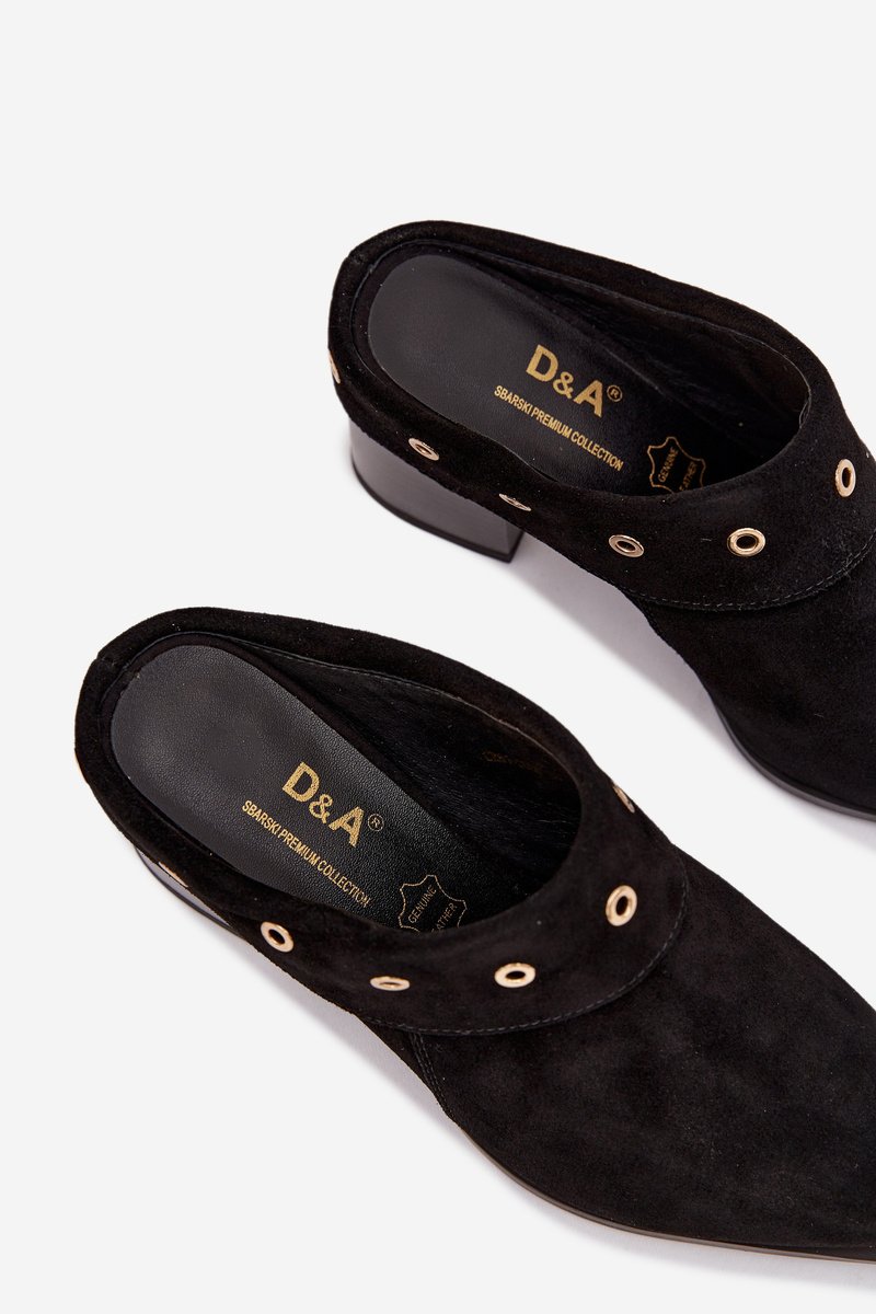 Moteriškos zomšinės šlepetės su stabiliu kulnu juoda D&A