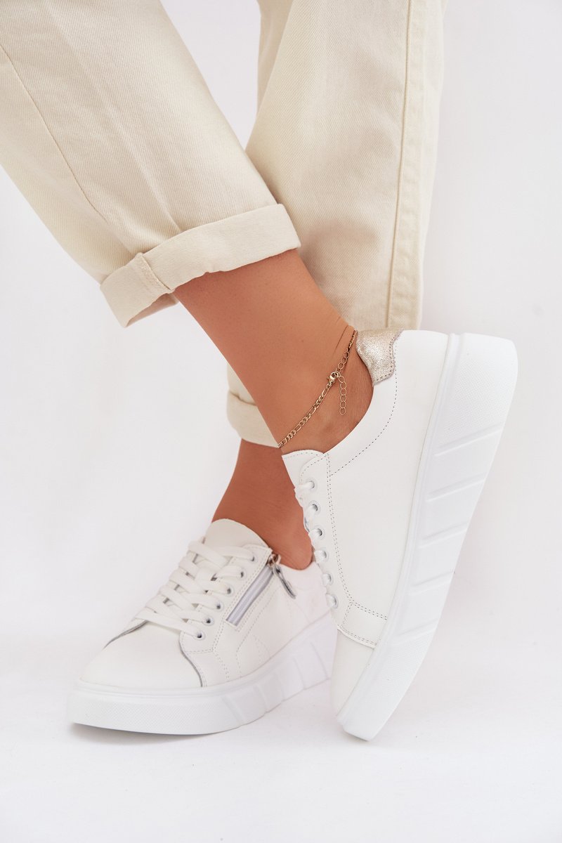 Moteriški pusbačiai iš natūralios odos, balti – lengvas fasonas su klasikiniu šnuravimu ir šoniniu užtrauktuku, kuris leidžia greitai užsidėti. Odinis vidpadis padidina nešiojimo komfortą, o natūralios odos paviršius parodo aiškią tekstūrą. Gamintojas Althea derina tradicinį siluetą su funkcionaliais sprendimais.