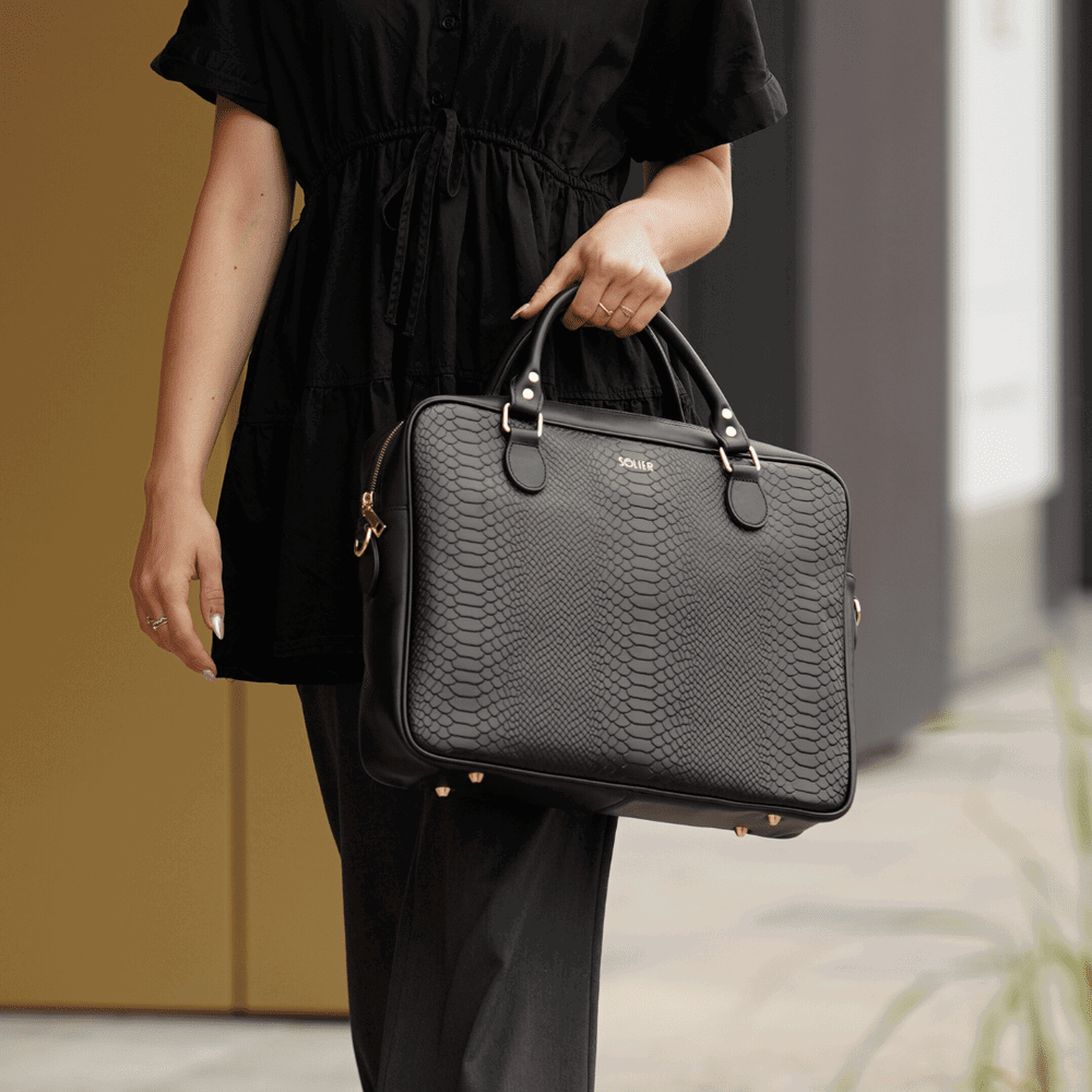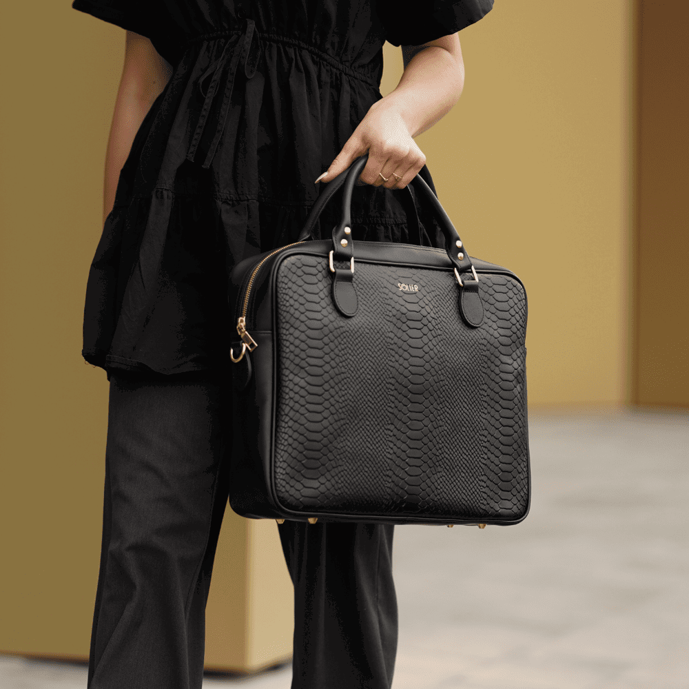 Natūralios odos nešiojamojo kompiuterio juodas su gyvatės raštu