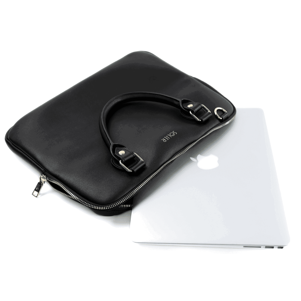 Odinė juoda moteriška kompiuterio rankinė 13,3 su dirželiu Solier