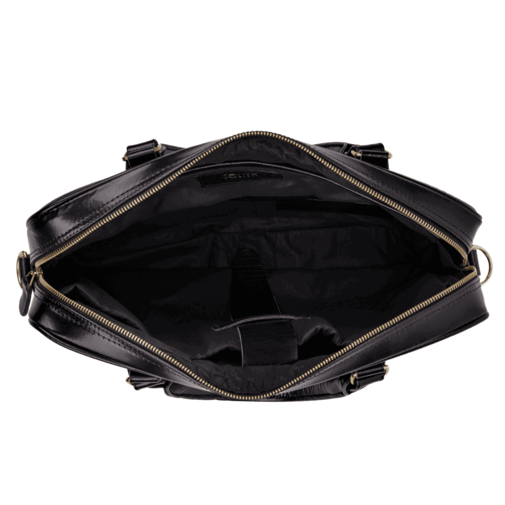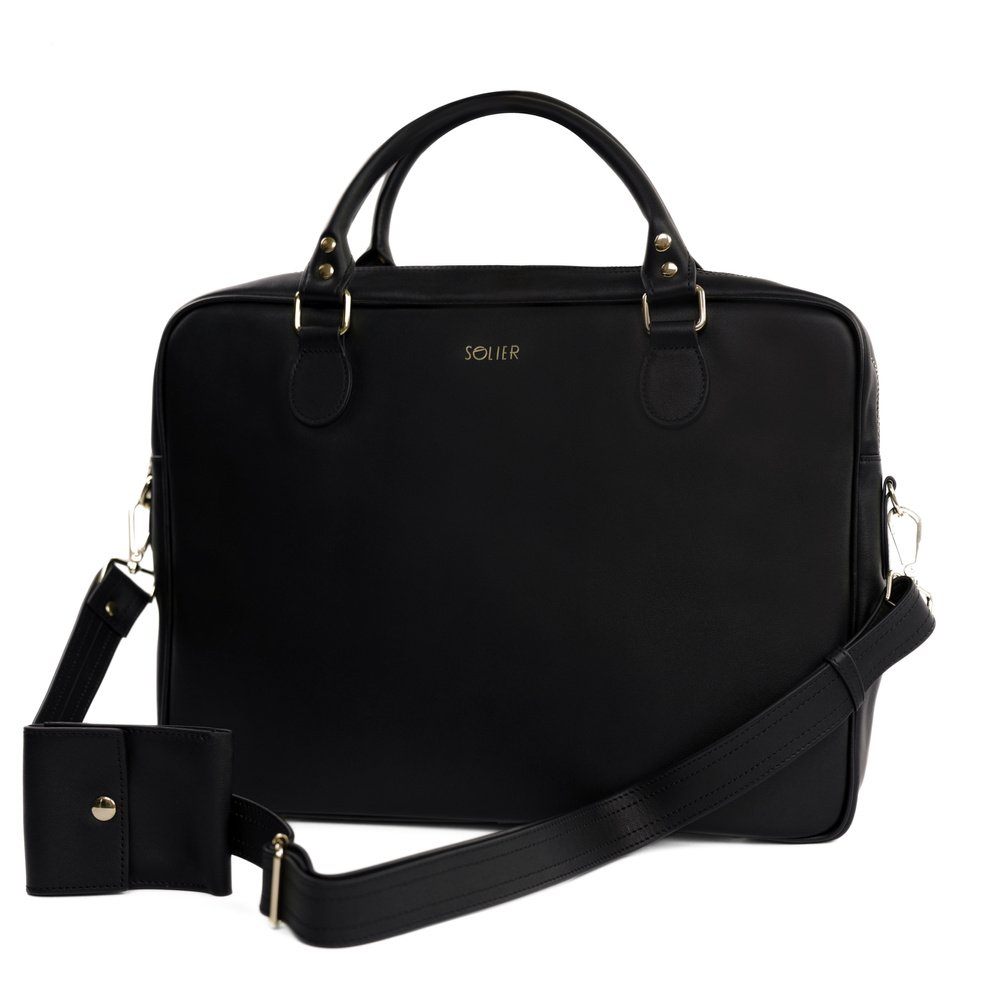 Odinė juoda moteriška kompiuterio rankinė su diržu Solier