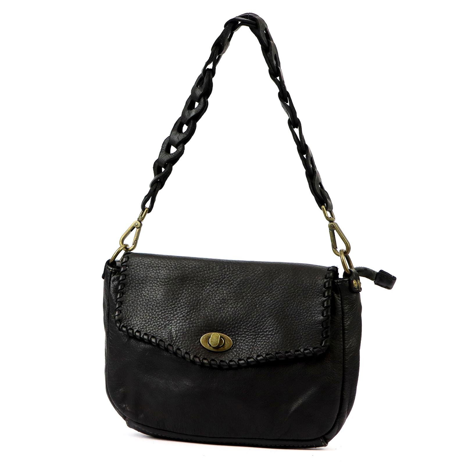 Odinė rankinė juoda su pintu dirželiu kasdienai VS