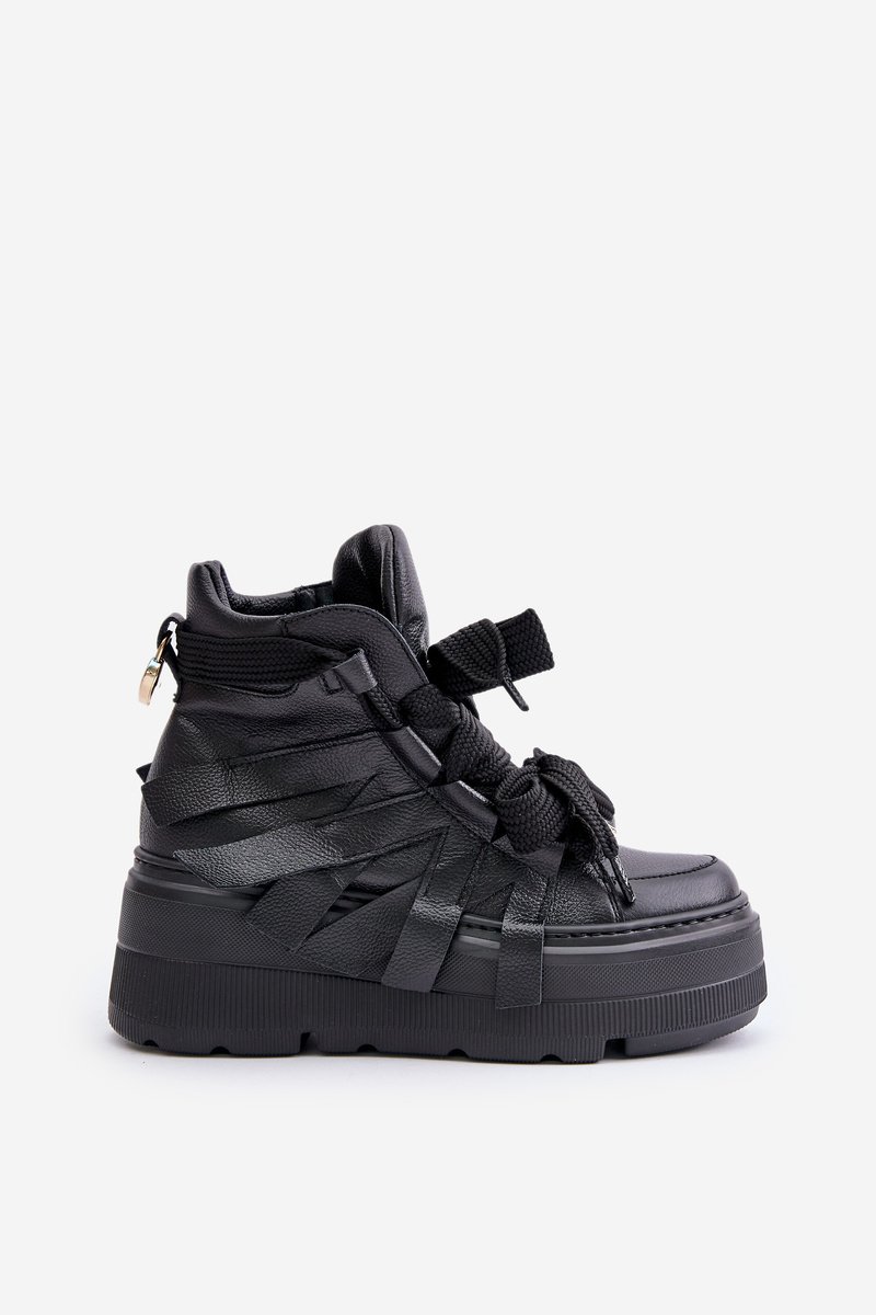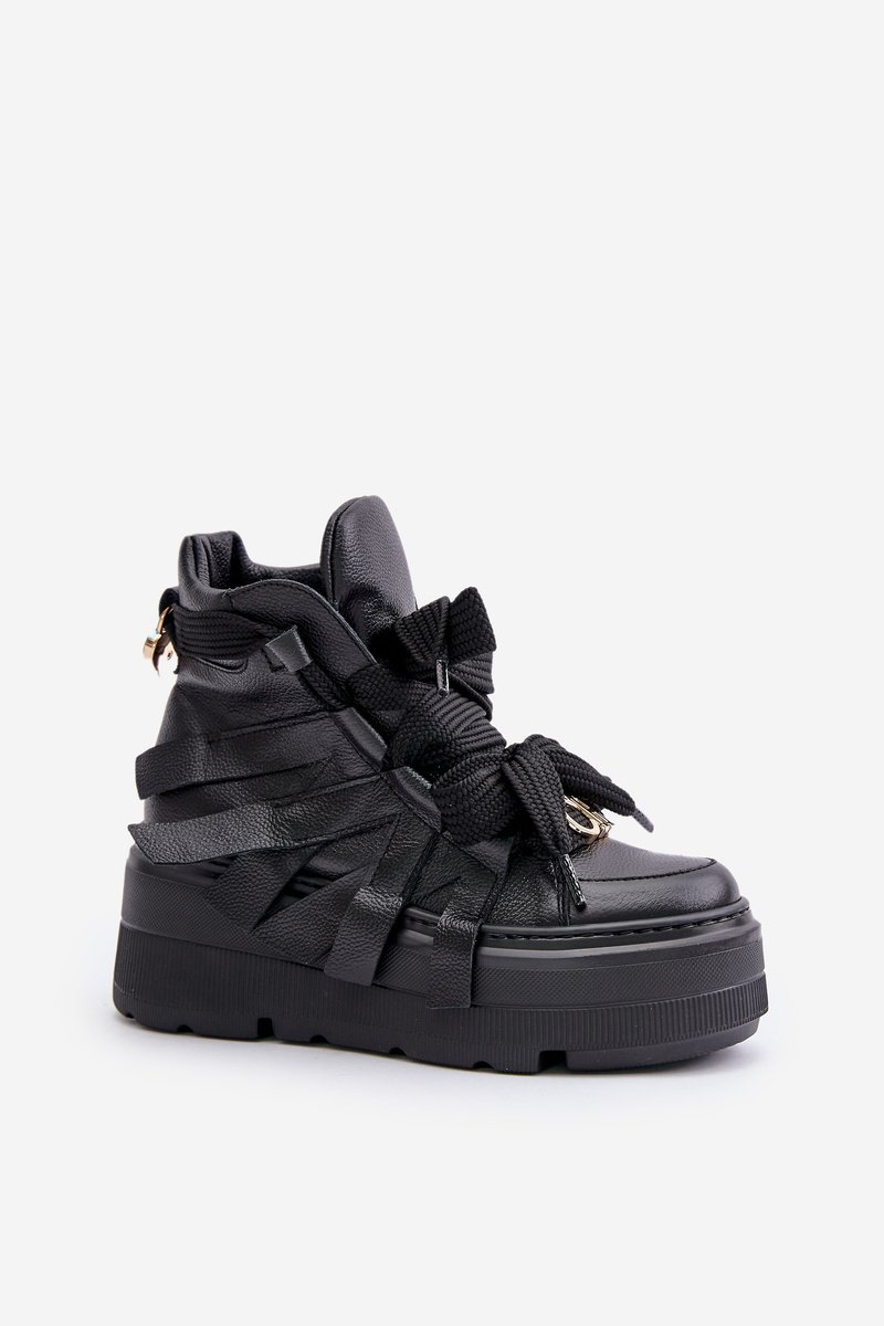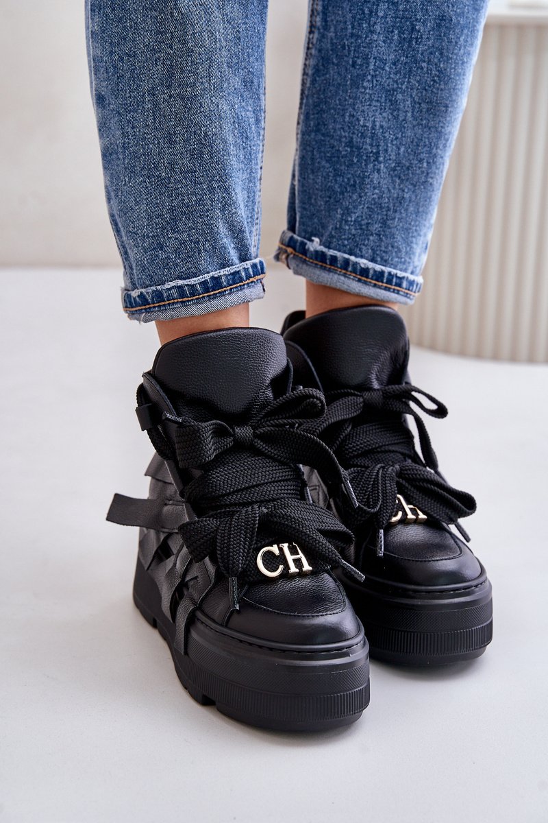 Odiniai moteriški sportbačiai ant masyvios platformos CheBello 4561 juodi