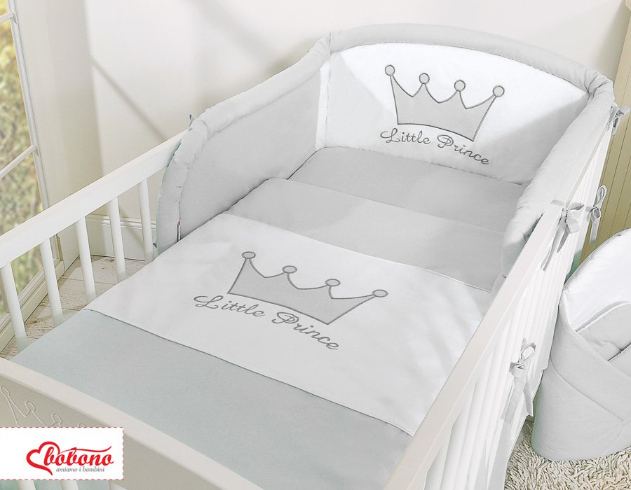 Vaikiška patalynės komplektas Little Prince/Princess“ – švelni pilka spalva ir 100 % medvilnė