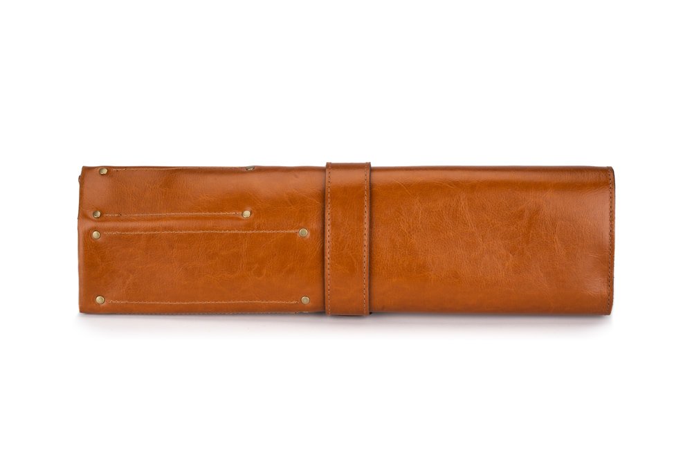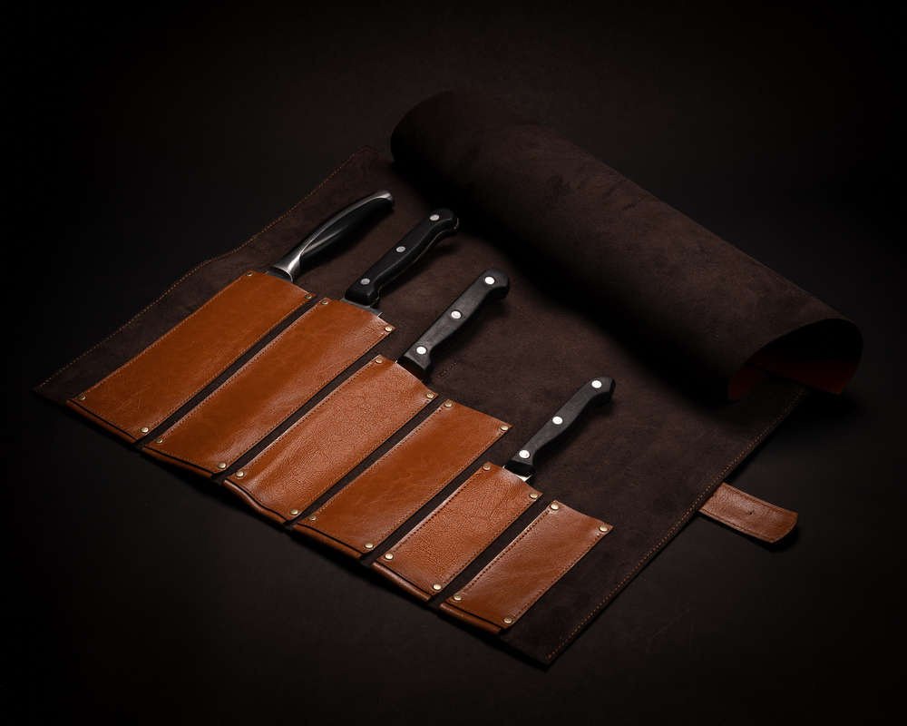 Peilių dėklas iš natūralios odos – ritinis, skirtas šešiems peiliams, patogiai susisukantis ir taupantis vietą, todėl patogu transportuoti į darbą ar į pokalbį su klientu. Solier gamintojo sprendimas vienu metu saugo įrankius ir suteikia tvarkingą laikymo vietą; užsegimas apsaugo peilius nuo iškritimo. Dėklas tinka profesionalams ir mėgėjams, kuriems svarbu, kad įrankiai būtų kartu ir saugiai laikomi.