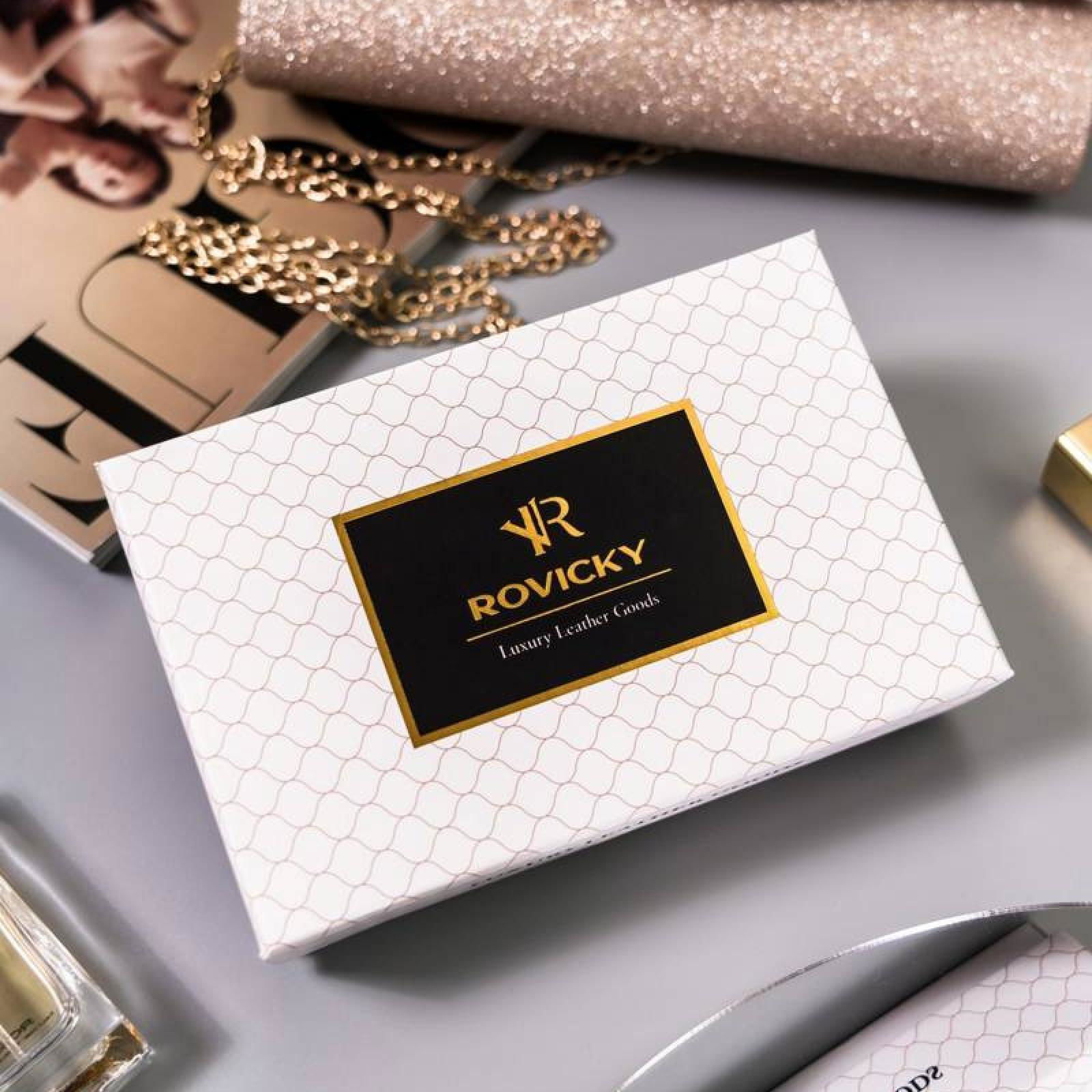Piniginė Rovicky iš natūralios ir dirbtinės odos – patogus ir stilingas aksesuaras kasdieniam naudojimui. Kompaktiškas dydis ir praktiškas dizainas puikiai tinka laikyti svarbiausius dokumentus ir grynuosius pinigus.