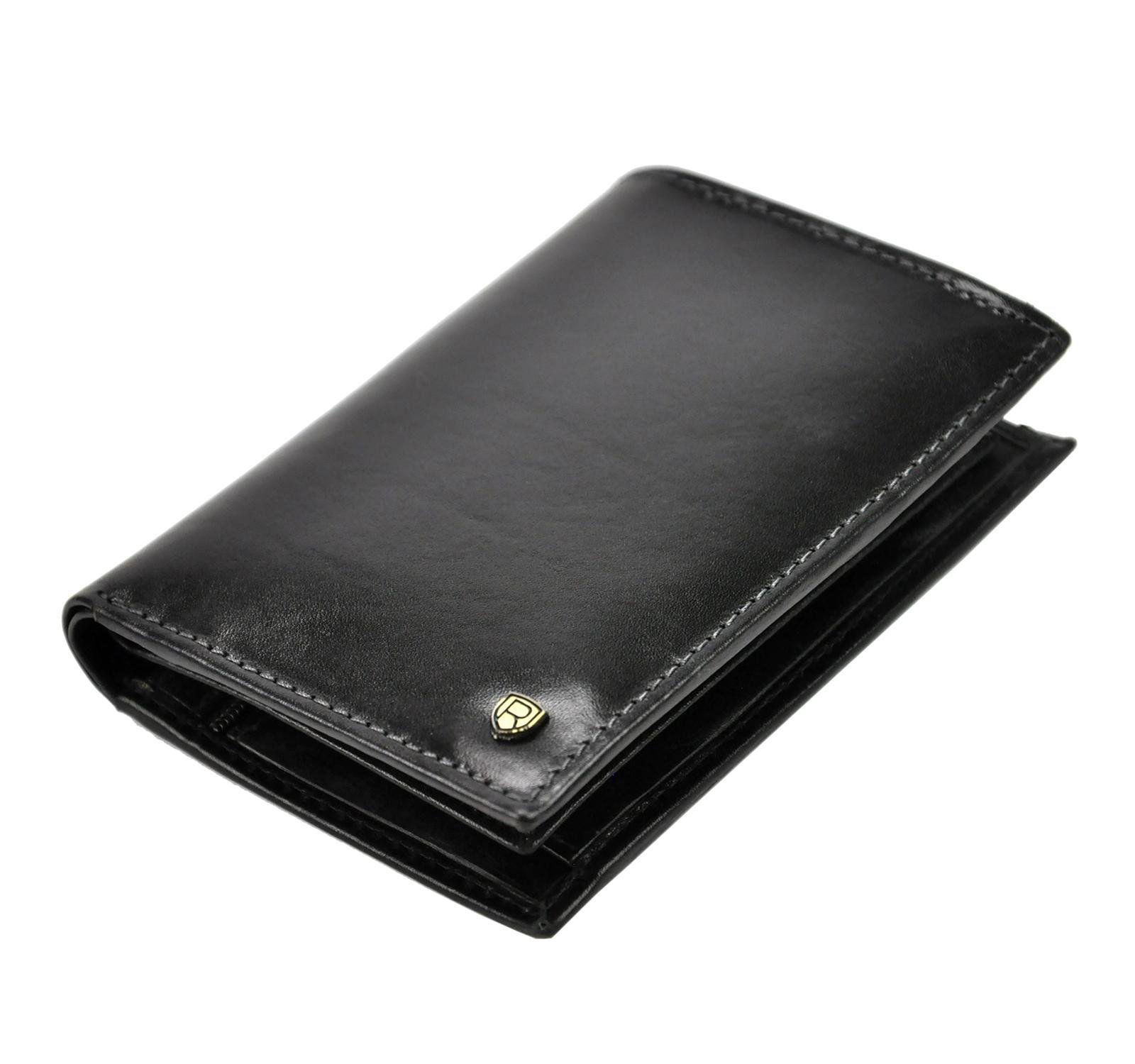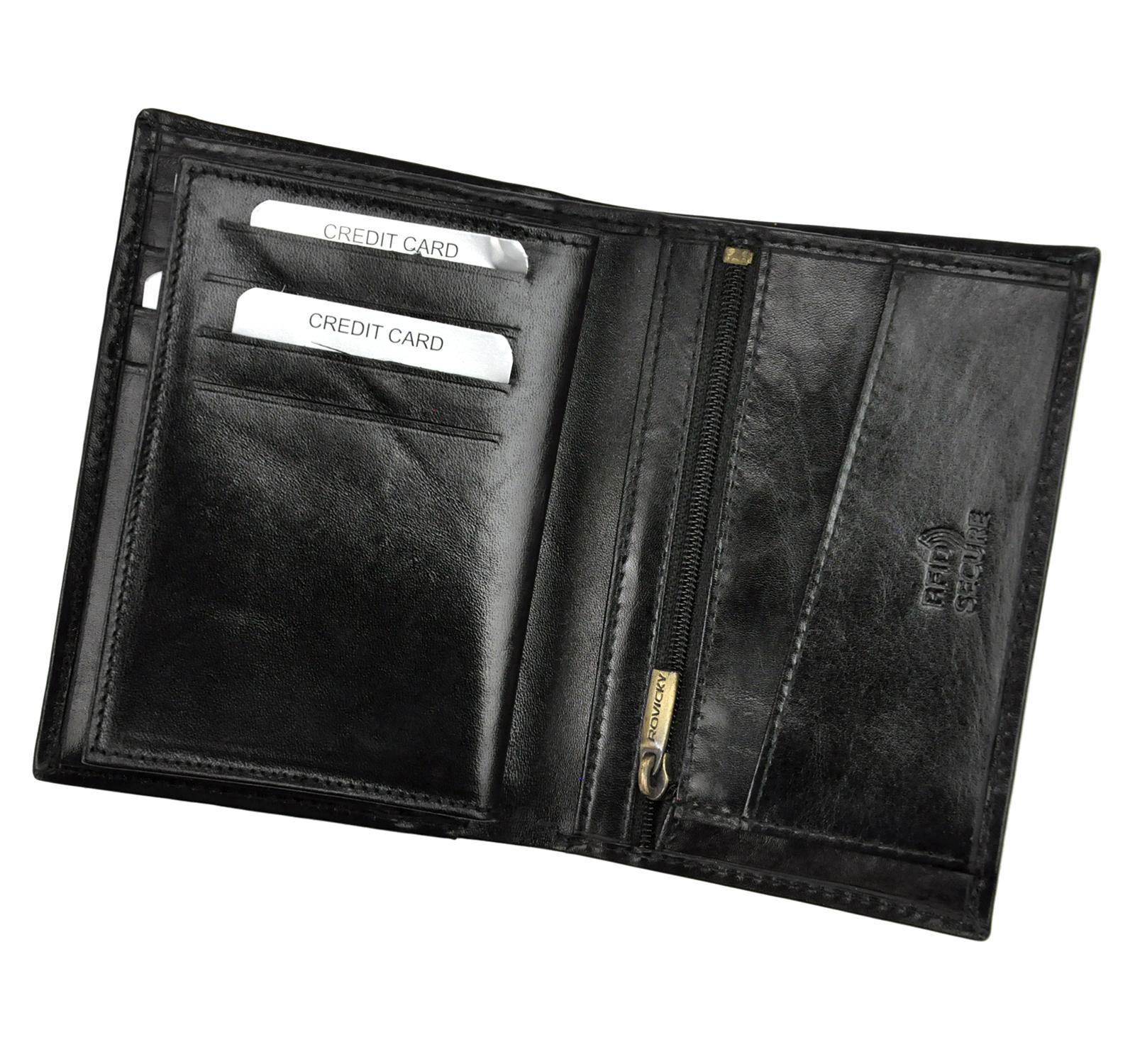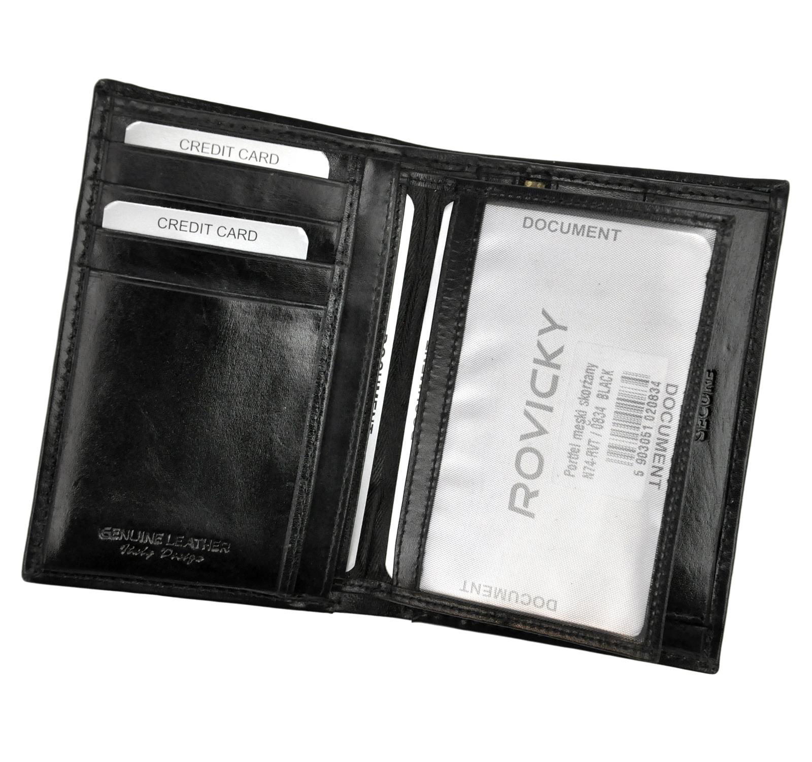 Kompaktiška juodos spalvos natūralios odos Rovicky piniginė – elegantiškas aksesuaras vyrams, vertinantiems kokybę, funkcionalumą ir laikui nepavaldų dizainą.
