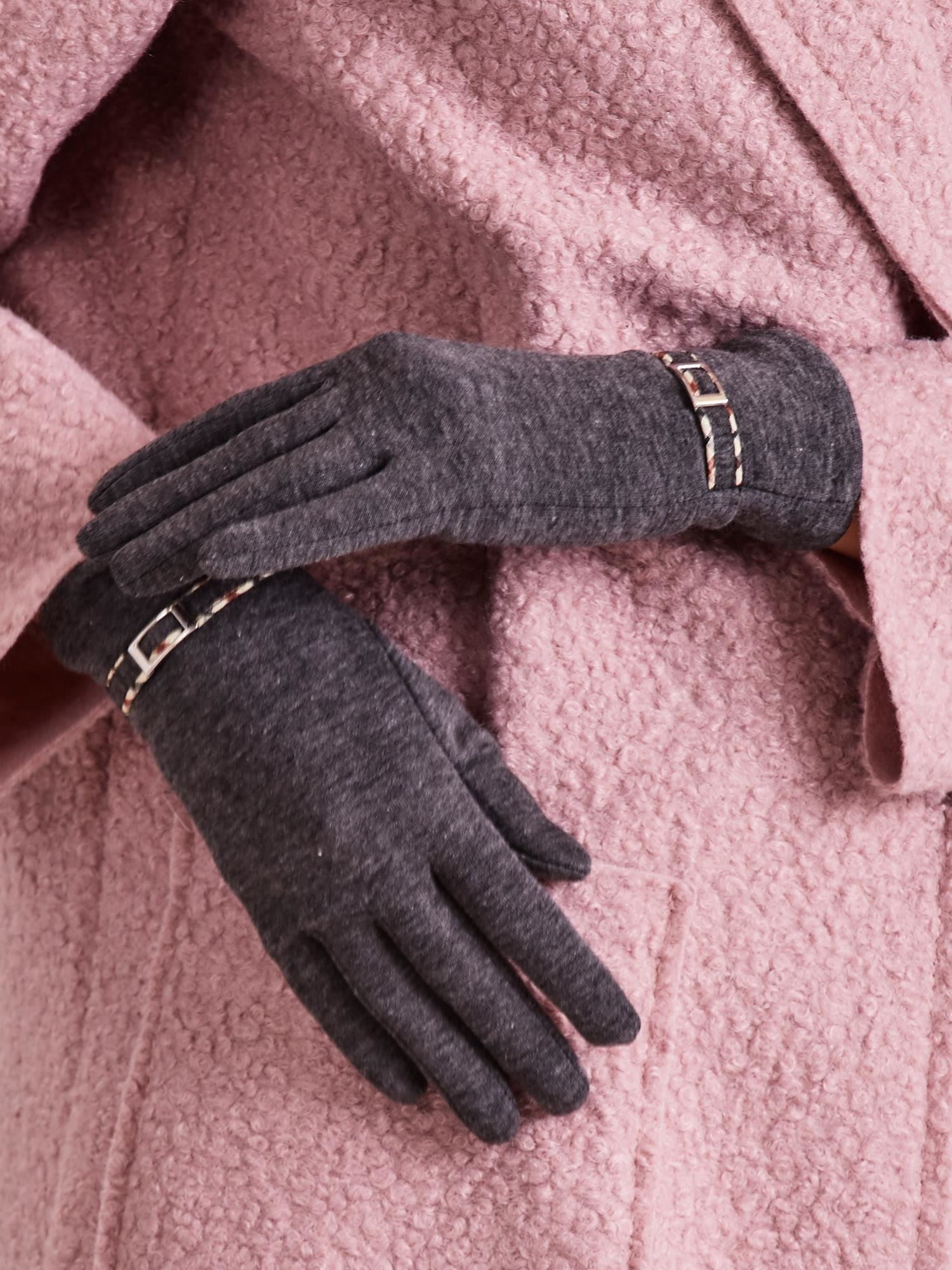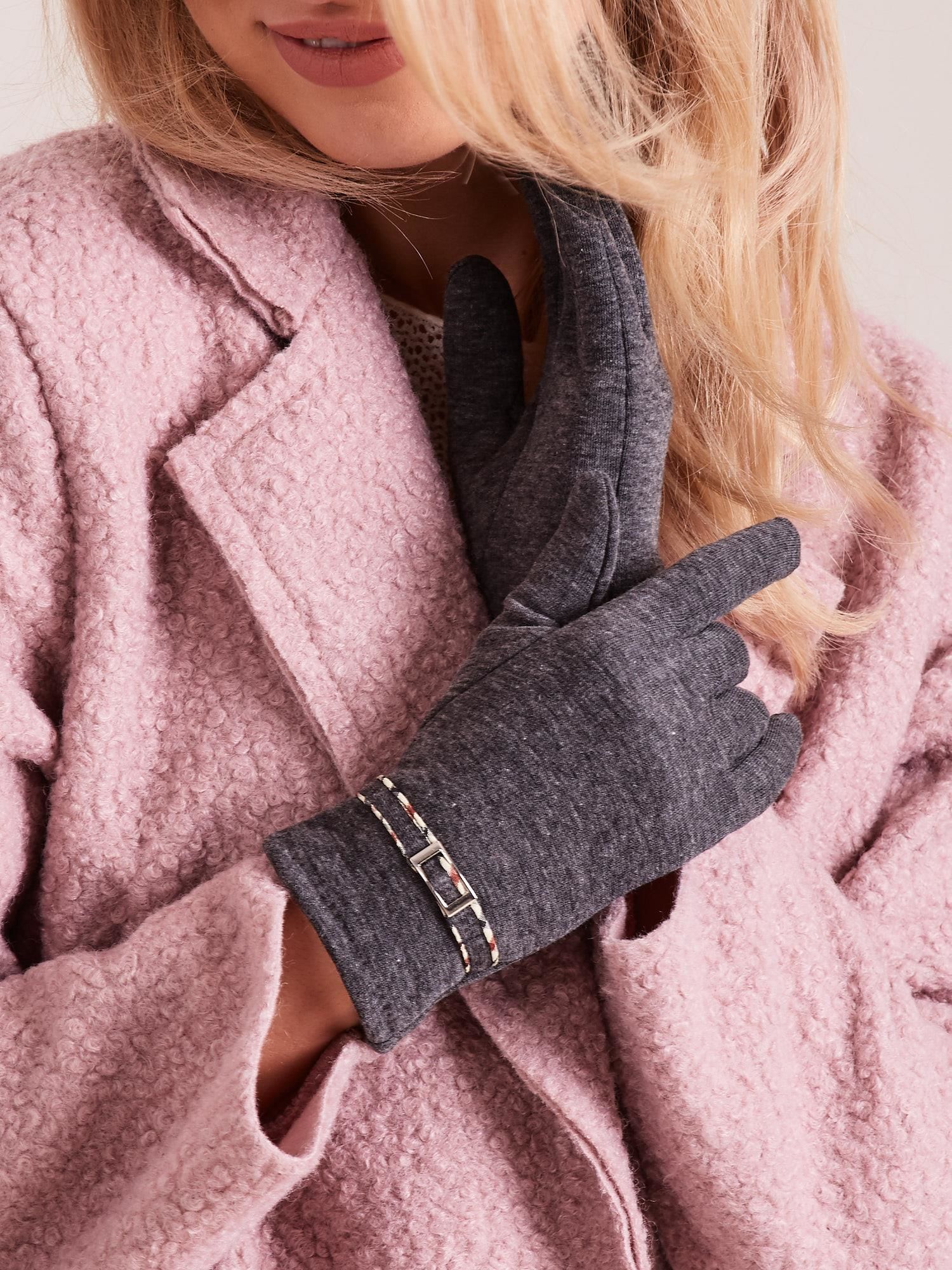 Moteriškos pirštinės su sagtimi tamsiai pilkos spalvos