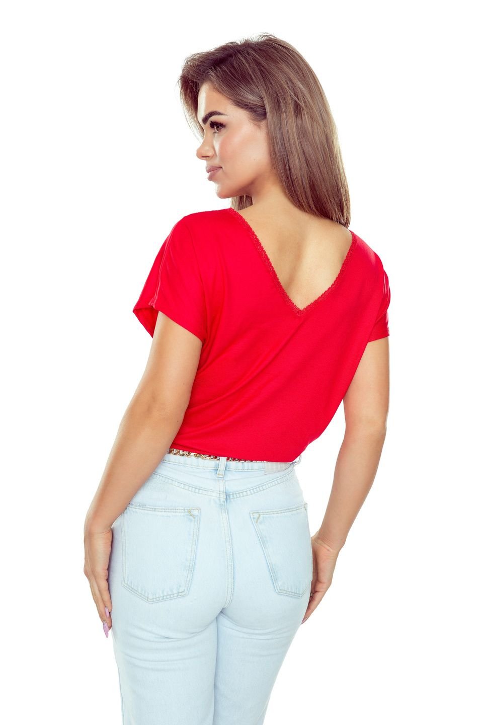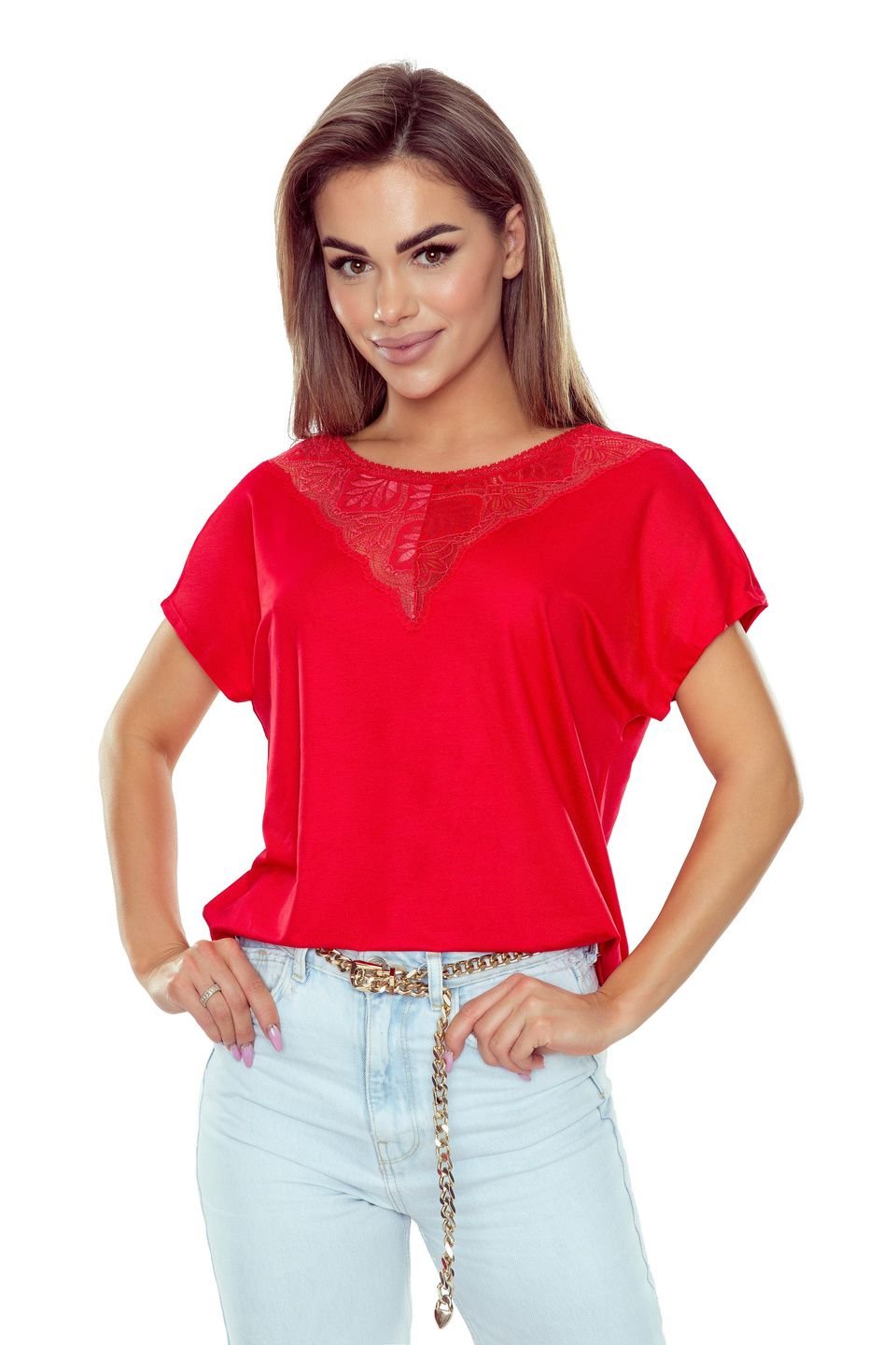 Ši elegantiška moteriška palaidinė yra itin universali – ją galite derinti tiek su klasikinėmis kelnėmis, tiek su džinsais ar sijonu. Dėl aukštos kokybės audinio palaidinė yra minkšta, lengva ir gerai priglunda prie kūno. V formos iškirptė su nėriniais suteikia rafinuotumo ir leidžia atrodyti stilingai bet kokia proga.
