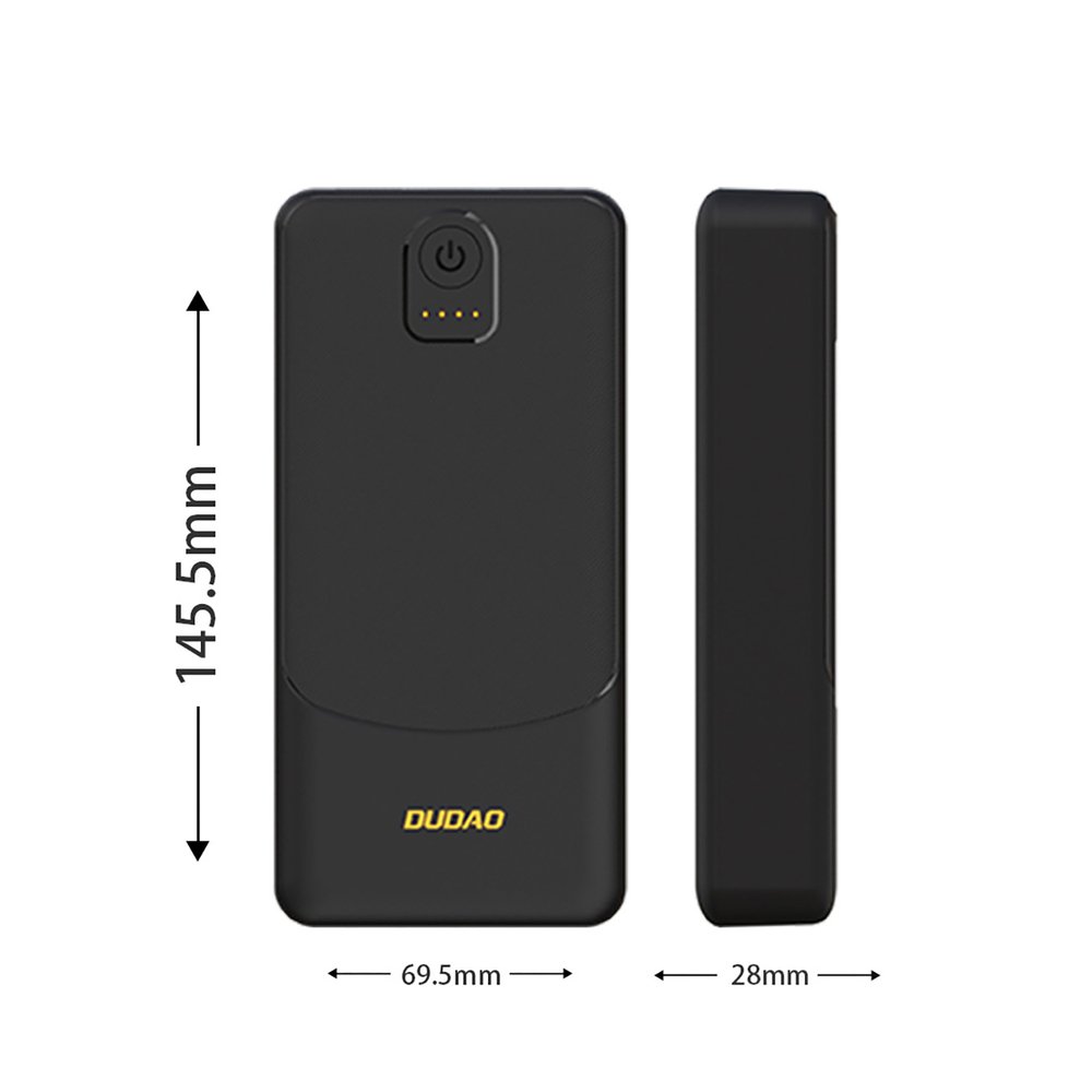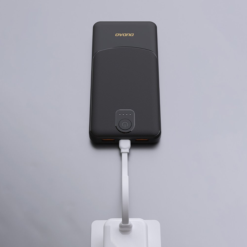 Powerbankas 20000mAh 2x USB-A suteikia ilgalaikę energiją išmaniesiems prietaisams ir leidžia įkrauti du įrenginius tuo pačiu metu, todėl ypač patogu kelionėse arba ilgo darbo dienomis; gamintojas Dudao. Įrenginyje iki 2,4 A išėjimo srovė užtikrina efektyvų įkrovimą, o kompaktiškas juodos spalvos korpusas telpa kuprinėje ar rankinėje. Didesnės talpos akumuliatorius leidžia kelis kartus pilnai įkrauti telefoną arba aptarnauti telefoną ir planšetę vienu įkrovimu.