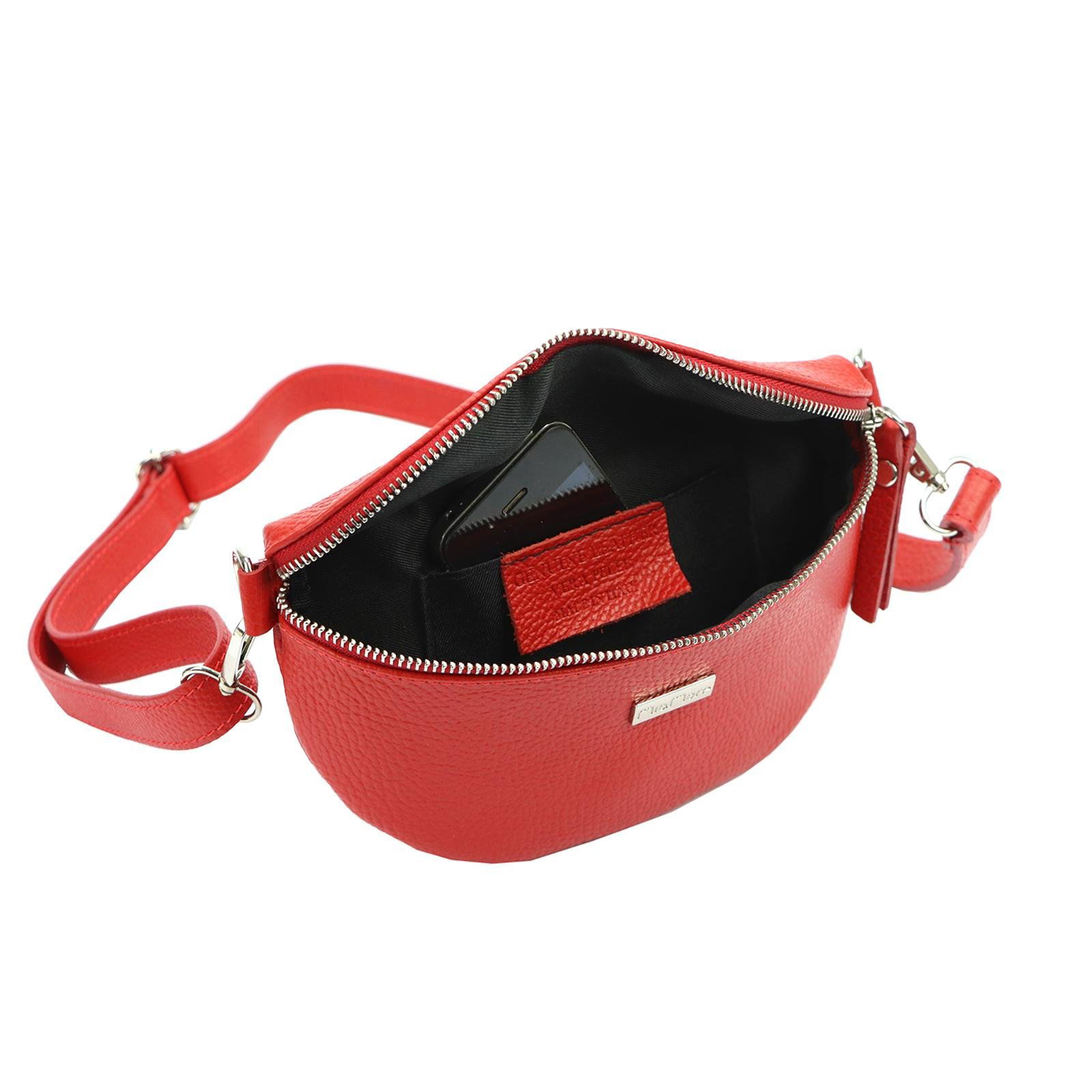 Rankinė moterims iš natūralios odos, 23 × 13 × 6 cm. Kompaktiški išmatavimai suteikia pakankamai vietos pagrindiniams kasdieniams daiktams, tuo pačiu išlaikant tvarkingą siluetą. Natūralios odos paviršius turi matomą tekstūrą, kuri lemia ilgesnį formos išlaikymą be papildomų konstrukcijų.