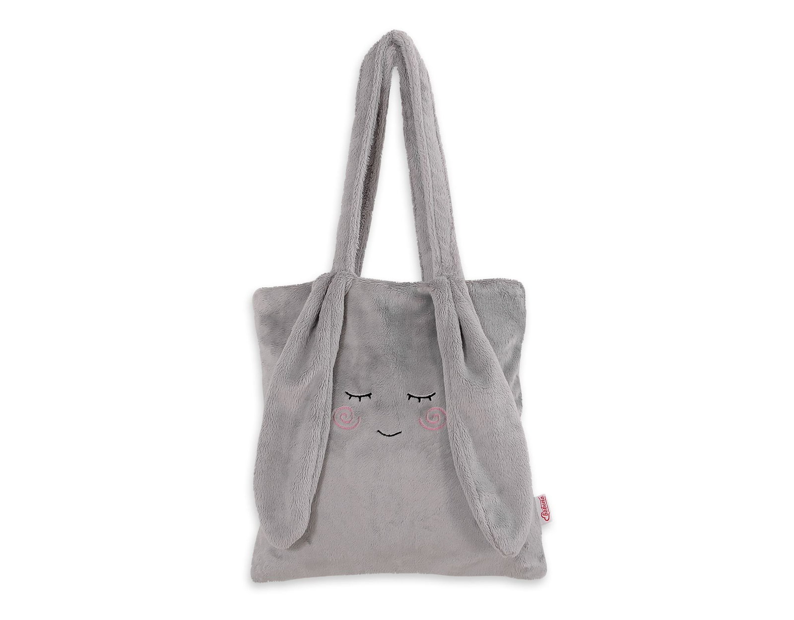 Ši vaikiška pilka rankinė per petį su ilgomis kiškio ausytėmis pagaminta iš švelnaus minky audinio, su medvilniniu pamušalu – tai ne tik mielas aksesuaras, bet ir praktiška detalė kasdienai.