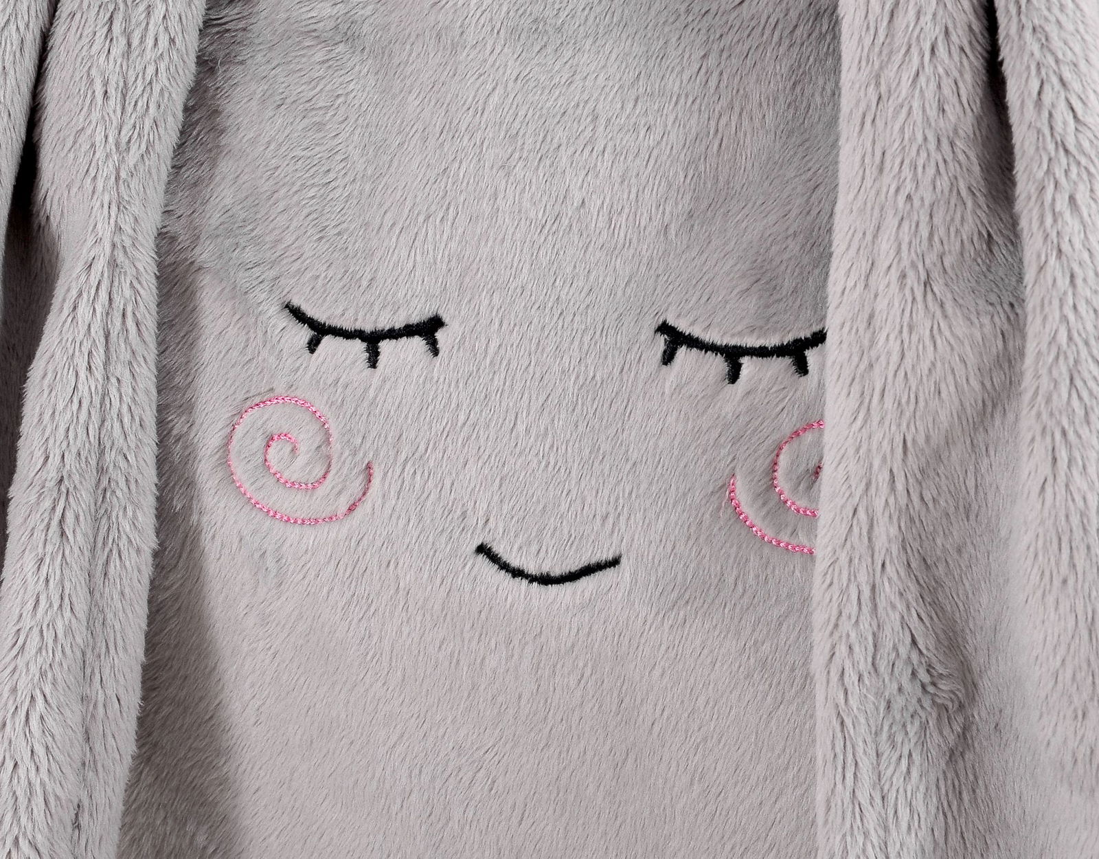| Ypatybės | Su ilgomis kiškio ausytėmis, su siuvinėtu kiškio veiduku, paminkštinta konstrukcija |