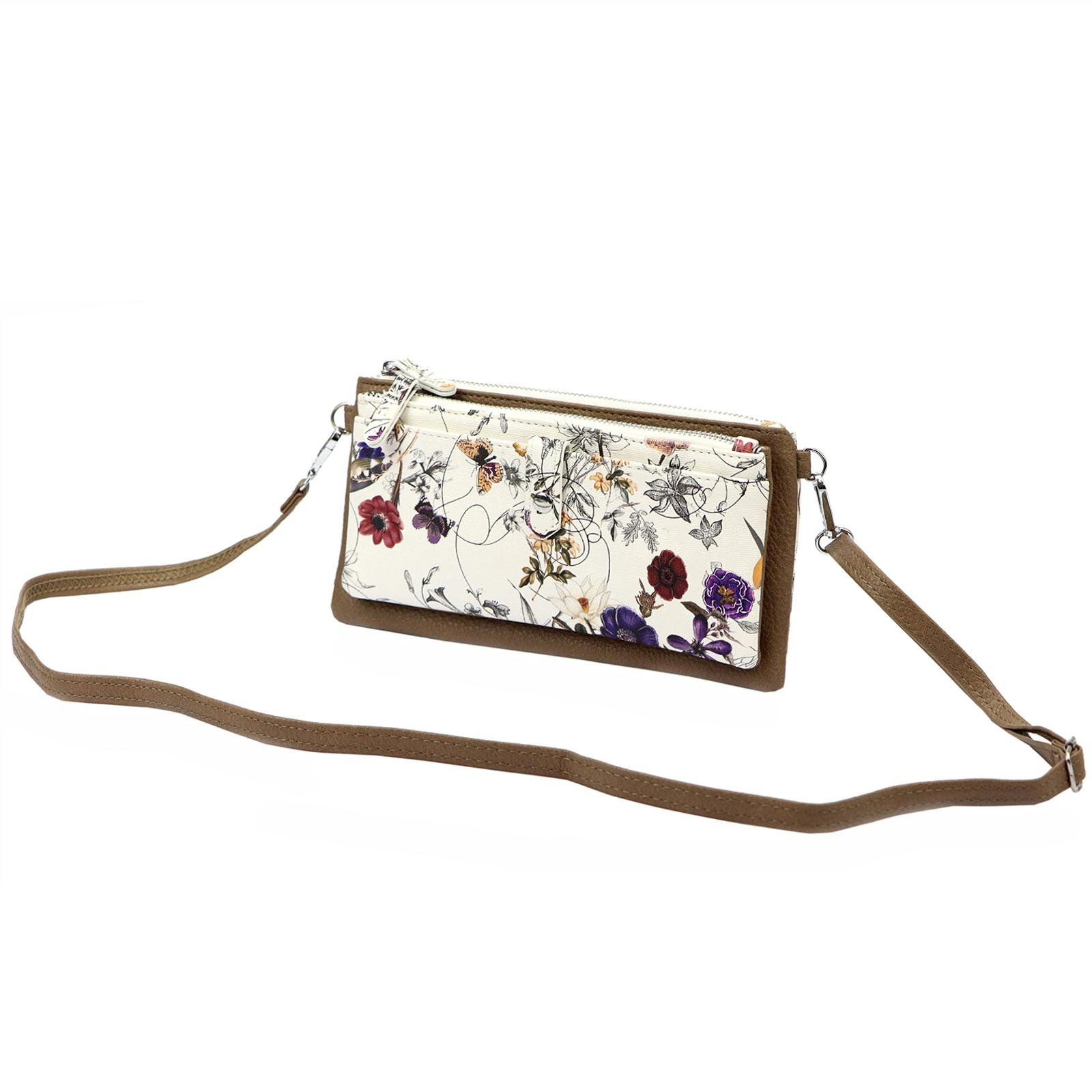 Švelni smėlinė spalva su subtiliais gėlių raštais, klasikinis siluetas ir elegantiški užsegimo elementai – tai rankinukas, kuris traukia žvilgsnius.