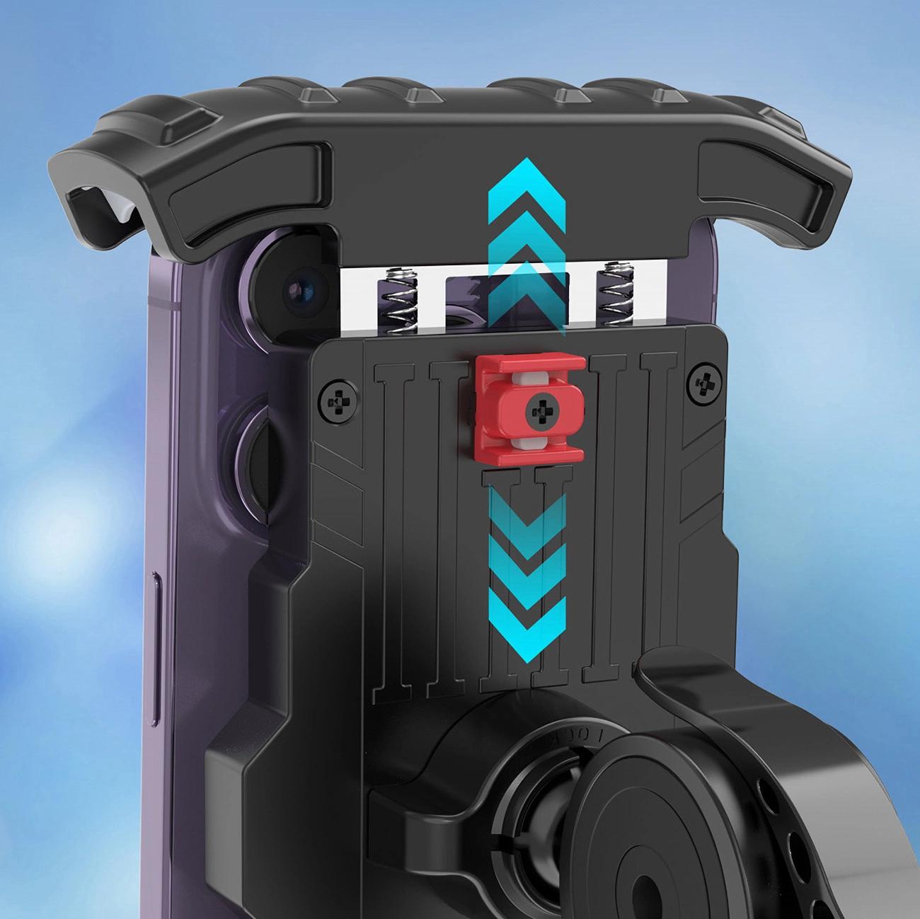 Jungiklis palengvina greitą telefono pritvirtinimą ir atrakinimą – tai didžiulis privalumas, kai kiekviena sekundė yra svarbi. Sėskite ant dviračio, pritvirtinkite telefoną, užrakinkite jį jungikliu ir leiskitės į kelią!