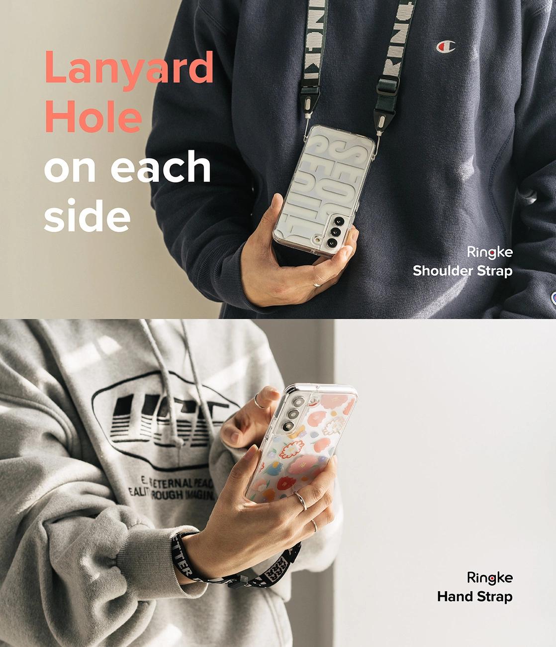 Dėklo šone yra vieta, kurioje galima pritvirtinti dirželį. Galite pakabinti telefoną ant riešo arba ant kaklo.