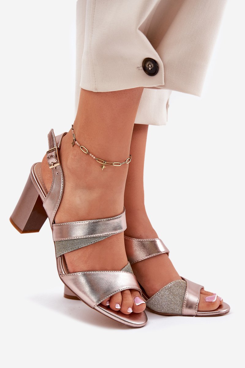 Rožinio aukso spalvos elegantiškos basutės su kulniuku moterims