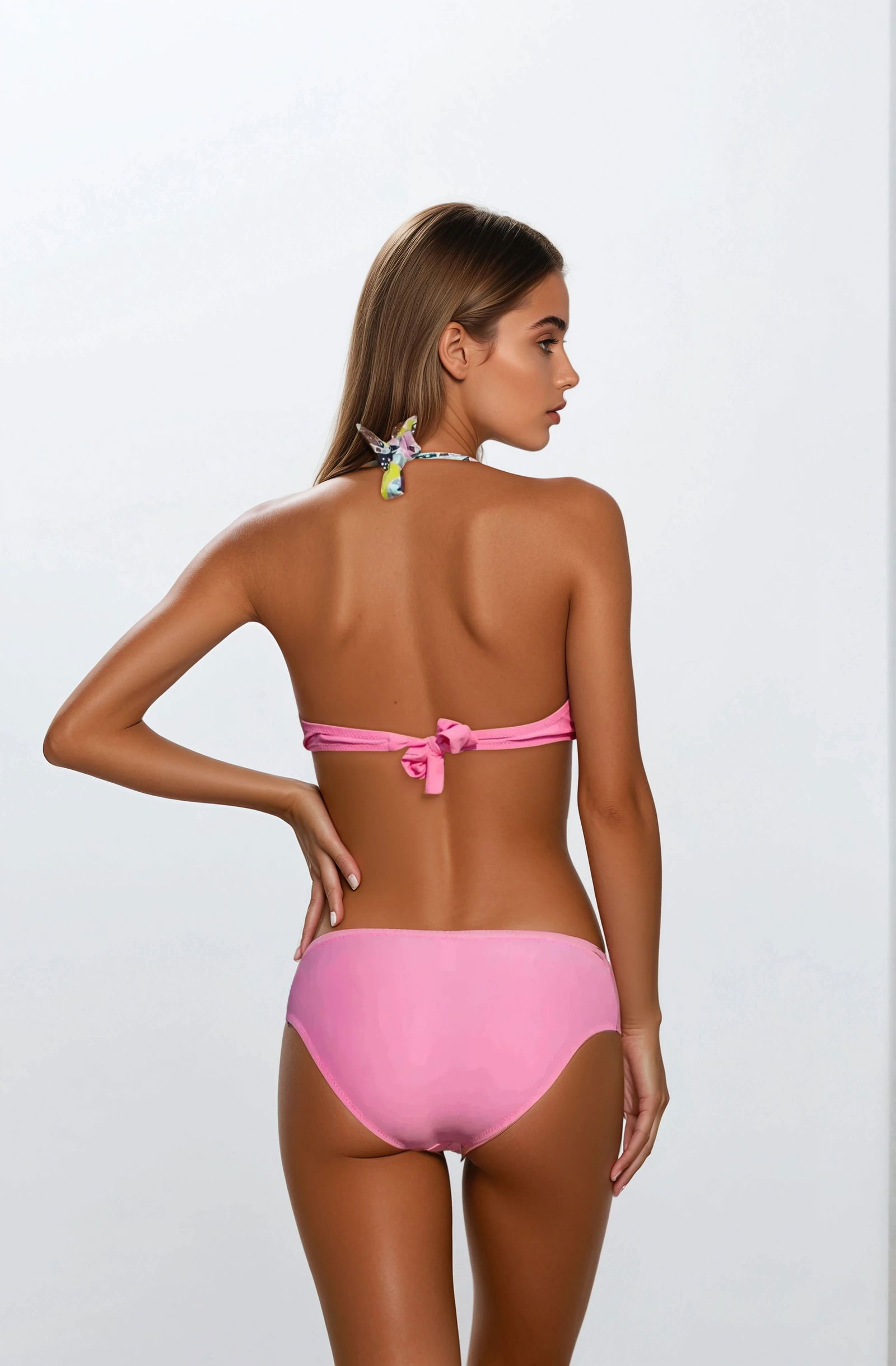 - 2 dalių komplektas: patogus bikini stiliaus viršus ir sijonėlio tipo kelnaitės – daugiau laisvės judesiams ir žaismingumo.