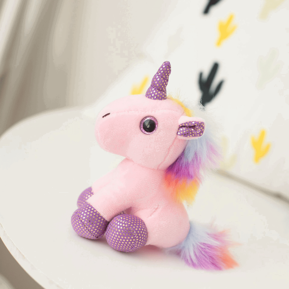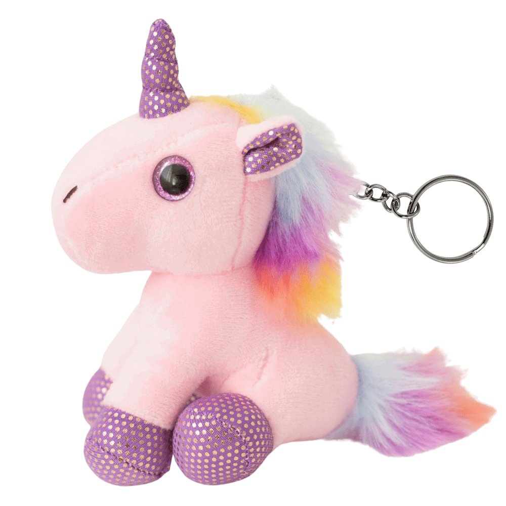 Žavus pliušinis vienaragio raktų pakabukas suteiks pasakiško žavesio jūsų raktams, kuprinei ar rankinei. Švelnus rožinis paviršius, blizgūs violetiniai akcentai ir vaivorykštinė karčiai bei uodega paverčia šį aksesuarą tikru dėmesio traukos centru. Kompaktiškas dydis leidžia jį lengvai nešiotis kišenėje ar naudoti kaip dekoratyvinę detalę.