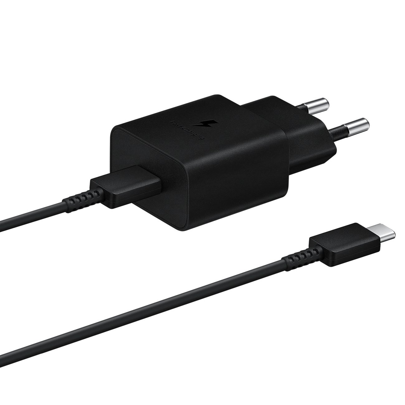 Samsung USB Type C 15W PD AFC tinklo įkroviklis + USB Type C kabelis, juodas (EP-T1510XBEGEU)