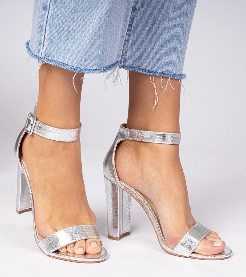 Sidabriniai aukštakulniai sandalai su dirželiu Miledia